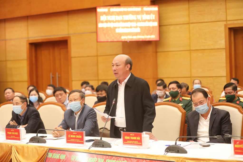 Về nhiệm vụ trọng tâm trong thời gian tới, đồng chí Bí Thư Tỉnh ủy nhấn mạnh: Đại hội đại biểu Đảng bộ tỉnh lần thứ XV, nhiệm kỳ 2020 - 2025, đã đề ra mục tiêu đến năm 2025, Quảng Ninh trở thành tỉnh dịch vụ, công nghiệp hiện đại, là một trong những trung tâm phát triển năng động, toàn diện của phía Bắc; đến năm 2030 xây dựng, phát triển Quảng Ninh là tỉnh kiểu mẫu giàu đẹp, văn minh, hiện đại; là một trong những trung tâm phát triển năng động, toàn diện… Hiện Quảng Ninh đang lập quy hoạch tỉnh thời kỳ 2021 - 2030, tầm nhìn đến 2050, tỉnh tiếp tục kiên trì đẩy mạnh chuyển đổi mô hình tăng trưởng, chuyển đổi phương thức phát triển từ “nâu” sang “xanh”, cơ cấu lại nền kinh tế; nâng cao năng suất, chất lượng, hiệu quả và sức cạnh tranh, phát triển nhanh, bền vững…