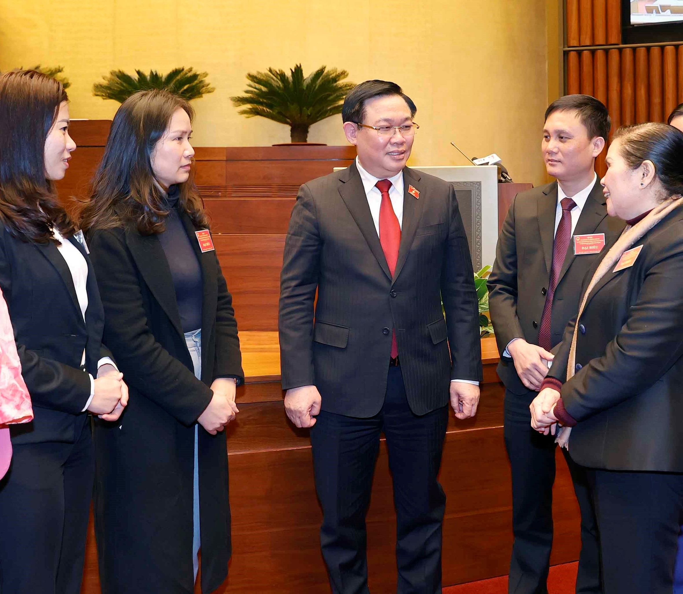 Ủy viên Bộ Chính trị, Chủ tịch Quốc hội Vương Đình Huệ và các đại biểu dự Hội nghị tổng kết công tác hội đồng nhân dân các tỉnh, thành phố khu vực phía Bắc năm 2021 và triển khai kế hoạch công tác năm 2022_Ảnh: TTXVN