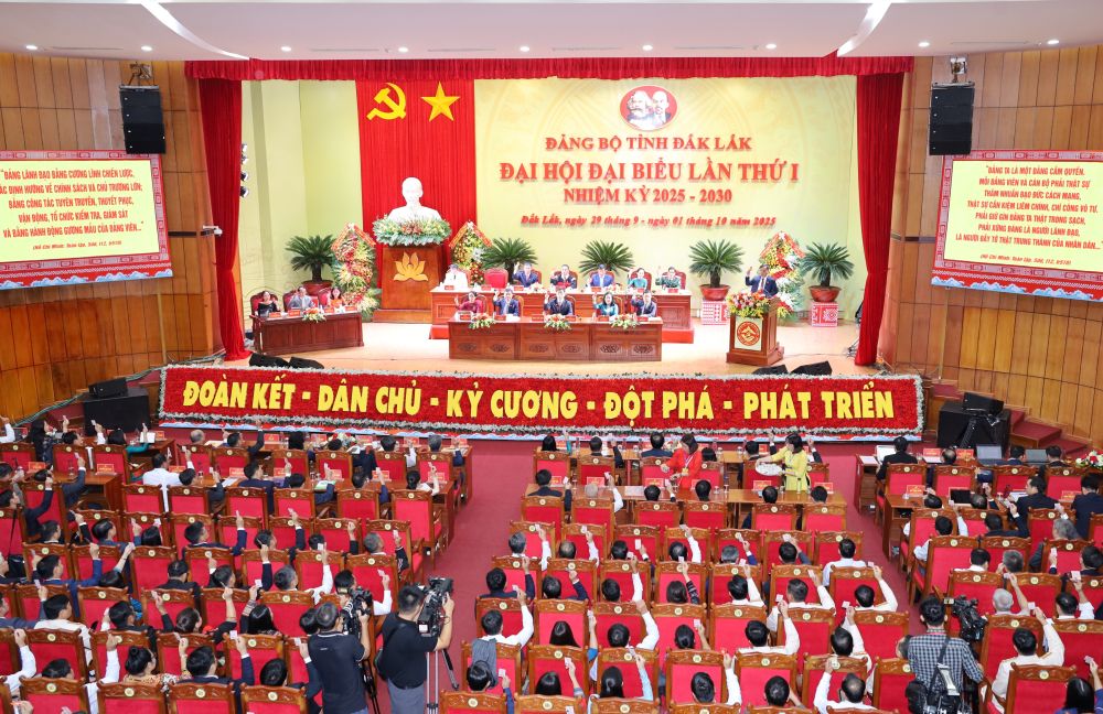 TCCS - Sau gần 2 ngày làm việc (29-9 và 1-10-2025), Đại hội đại biểu Đảng bộ tỉnh Đắk Lắk lần thứ I, nhiệm kỳ 2025 - 2030 với chủ đề: “Phát huy sức mạnh đoàn kết, xây dựng Đảng, hệ thống chính trị trong sạch, vững mạnh, hoạt động hiệu năng, hiệu lực, hiệu quả; bảo đảm vững chắc quốc phòng - an ninh; quyết tâm thực hiện thắng lợi mục tiêu, nhiệm vụ đến năm 2030; xây dựng tỉnh Đắk Lắk phát triển nhanh, bền vững, văn minh, bản sắc” đã thành công tốt đẹp.