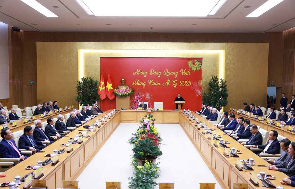 Phát biểu tại buổi gặp mặt, Thủ tướng Chính phủ Phạm Minh Chính nhấn mạnh, cả nước vừa trải qua năm 2024 với nhiều khó khăn, thách thức. Nhưng dưới sự lãnh đạo sâu sát của Ban Chấp hành Trung ương, mà trực tiếp, thường xuyên là Bộ Chính trị, Ban Bí thư, đứng đầu là đồng chí Tổng Bí thư; sự đồng hành, phối hợp chặt chẽ của Quốc hội và các cơ quan trong hệ thống chính trị; sự ủng hộ, tham gia tích cực của nhân dân, cộng đồng doanh nghiệp; sự giúp đỡ của bạn bè quốc tế; kinh tế - xã hội phục hồi tích cực trên hầu hết các lĩnh vực, không chỉ đạt mà cơ bản vượt toàn bộ 15/15 chỉ tiêu chủ yếu, với 12 điểm sáng trên các mặt công tác.