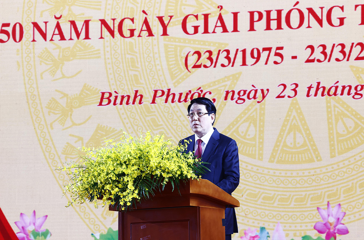 Ủy viên Bộ Chính trị, Chủ tịch nước Lương Cường phát biểu kỷ niệm 50 năm Giải phóng tỉnh Bình Phước (23-3-1975 – 23-3-2025)_Ảnh: TTXVN