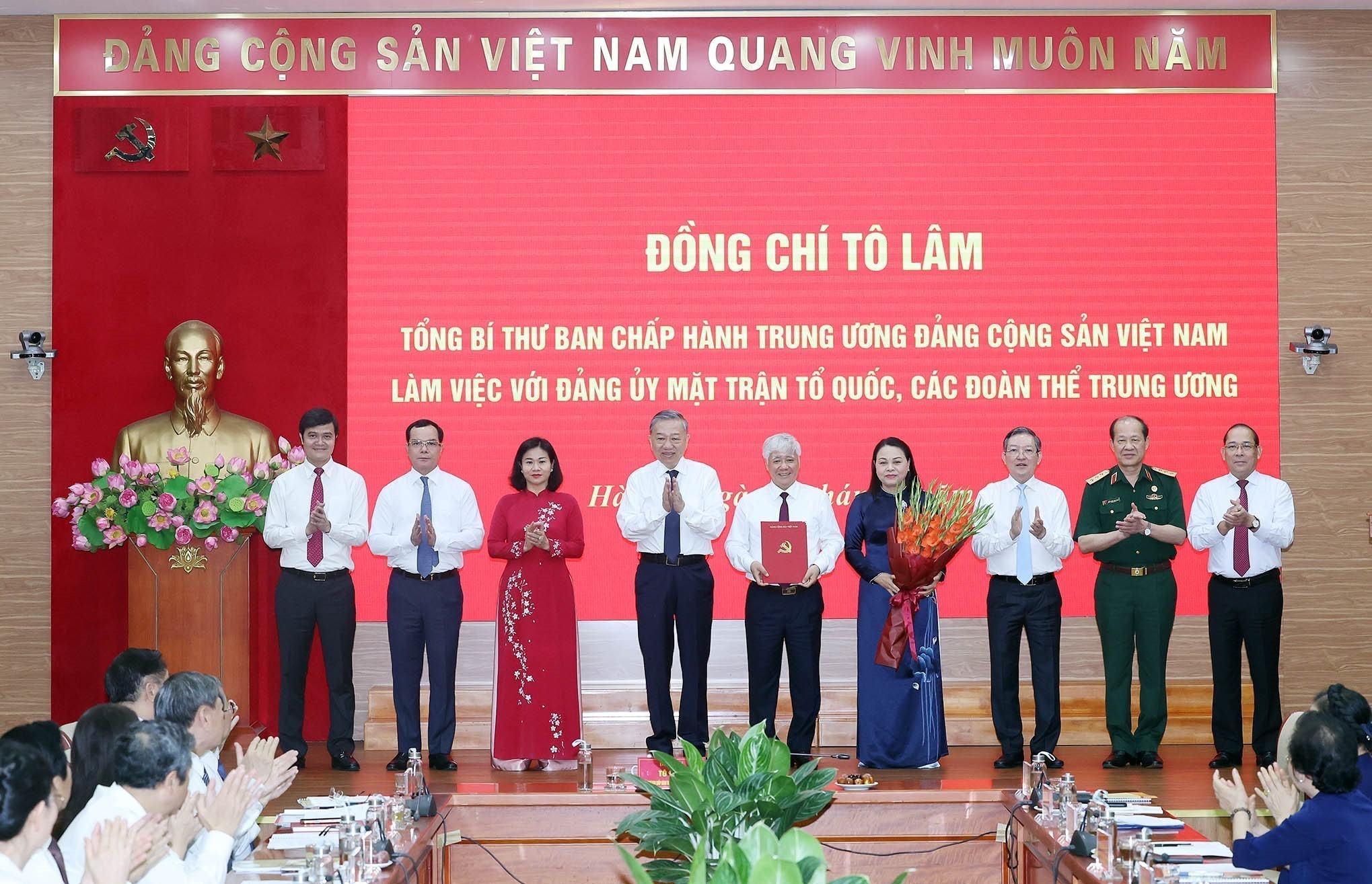 Tổng Bí thư Tô Lâm làm việc với Đảng ủy Mặt trận Tổ quốc, các đoàn thể Trung ương