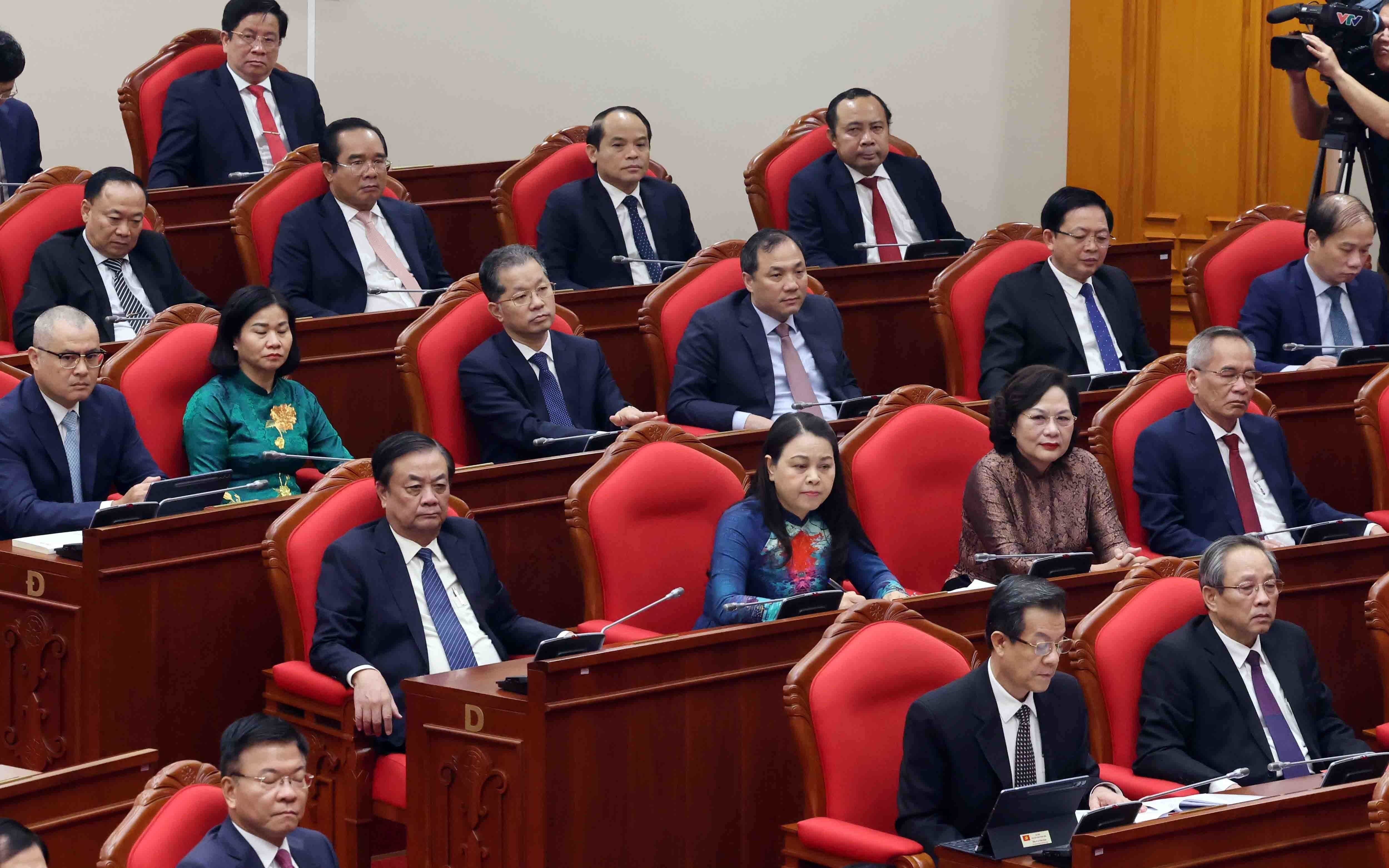 Các đồng chí Ủy viên Bộ Chính trị: Lê Minh Hưng, Bí thư Trung ương Đảng, Trưởng Ban Tổ chức Trung ương; Nguyễn Xuân Thắng, Giám đốc Học viện Chính trị quốc gia Hồ Chí Minh, Chủ tịch Hội đồng Lý luận Trung ương; Nguyễn Hòa Bình, Phó Thủ tướng Thường trực Chính phủ thay mặt Bộ Chính trị trình bày các báo cáo tiếp thu, giải trình của Bộ Chính trị đối với các vấn đề Trung ương đã thảo luận tại hội nghị.