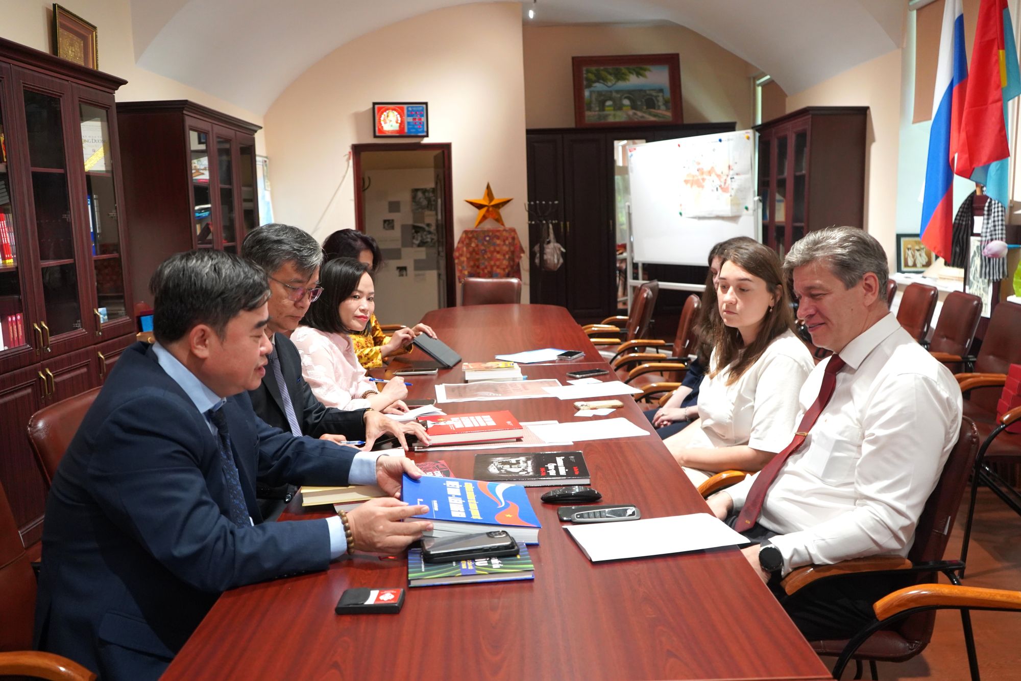 Tại buổi làm việc, GS. Vladimir Kolotov chia sẻ nhiều nội dung liên quan chặng đường 15 năm trưởng thành và phát triển, góp phần tích cực, hiệu quả và quan trọng là nhịp cầu chia sẻ tri thức, lan toả tư tưởng, đạo đức văn hóa Hồ Chí Minh nói riêng, cũng như giá trị, bản sắc văn hóa và sức mạnh con người Việt Nam nói chung ra thế giới. Viện Hồ Chí Minh thuộc Đại học Quốc gia Saint Petersburg đã khẳng định vai trò, vị thế là một cơ quan nghiên cứu chuyên sâu về Hồ Chí Minh, tích cực góp phần đẩy mạnh nghiên cứu, lan tỏa di sản Hồ Chí Minh, trở thành một trong những cầu nối gắn kết tình cảm hữu nghị truyền thống sâu đậm và thủy chung giữa hai nước.