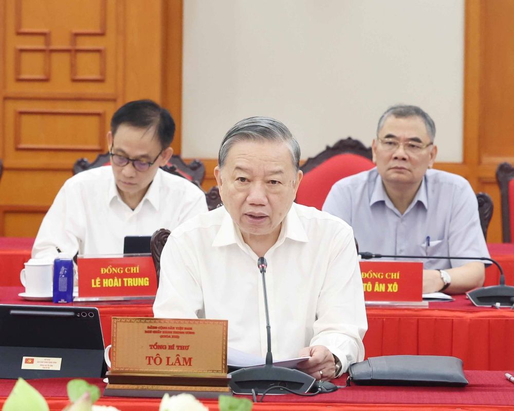 Phát biểu khai mạc, Tổng Bí thư Tô Lâm cho biết, Bộ Chính trị làm việc với tập thể Ban Thường vụ Thành ủy Hà Nội và Ban Thường vụ Thành ủy Thành phố Hồ Chí Minh xuất phát từ vai trò, tầm quan trọng của hai địa phương đối với cả nước, với mục đích chuẩn bị kỹ lưỡng các văn kiện và nhân sự trình đại hội bảo đảm đáp ứng được tầm nhìn và định hướng phát triển trong bối cảnh tình hình mới có nhiều thay đổi về không gian phát triển, nguồn lực và động lực để Hà Nội, Thành phố Hồ Chí Minh phát triển tương xứng với vai trò, vị thế, tiềm năng và thế mạnh của mỗi địa phương và của cả nước.