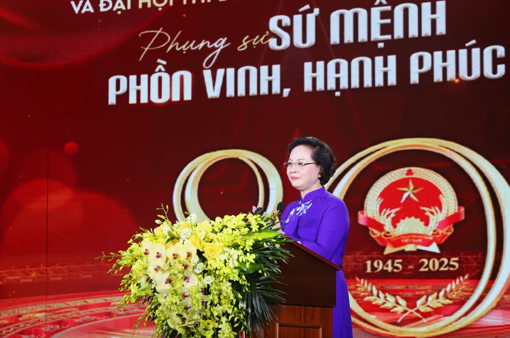 Đồng chí Phạm Thị Thanh Trà, Ủy viên Trung ương Đảng, Phó Trưởng Ban Tổ chức Trung ương, Bộ trưởng Bộ Nội vụ phát biểu tại buổi lễ_Ảnh: moha.gov.vn