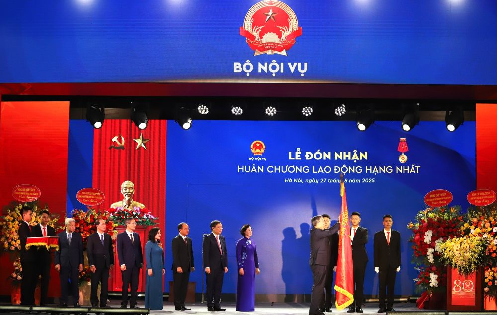 Nhân dịp này, thay mặt lãnh đạo Đảng, Nhà nước, Tổng Bí thư Tô Lâm đã trao tặng Huân chương Lao động hạng Nhất cho Bộ Nội vụ vì đã có thành tích đặc biệt xuất sắc, đột xuất trong tham mưu thực hiện sắp xếp tổ chức bộ máy nhà nước, đơn vị hành chính các cấp và tổ chức mô hình chính quyền địa phương hai cấp, góp phần xây dựng và phát triển đất nước./.