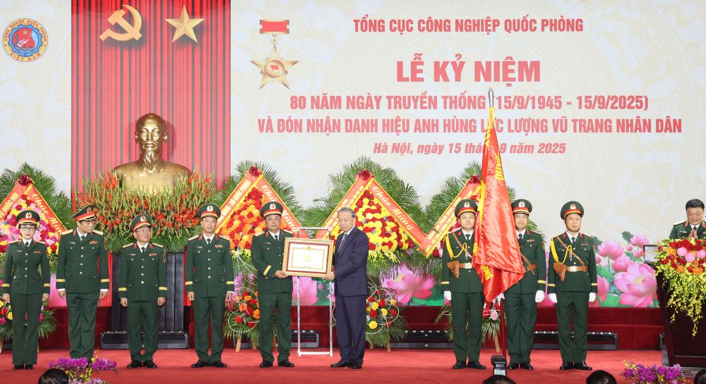 TCCS - Ngày 15-9-2025, tại Thủ đô Hà Nội, Tổng cục Công nghiệp quốc phòng, Bộ Quốc phòng long trọng tổ chức Lễ kỷ niệm 80 năm Ngày truyền thống (15-9-1945 - 15-9-2025) và đón nhận danh hiệu Anh hùng Lực lượng vũ trang nhân dân (lần thứ hai). Đồng chí Tô Lâm, Tổng Bí thư Ban Chấp hành Trung ương Đảng, Bí thư Quân ủy Trung ương, tham dự và phát biểu tại buổi lễ.