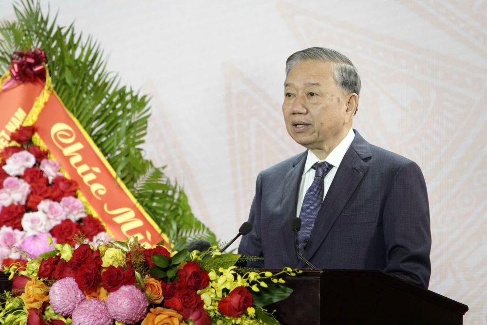 Đồng chí Tô Lâm, Tổng Bí thư Ban Chấp hành Trung ương Đảng, Bí thư Quân ủy Trung ương thay mặt lãnh đạo Đảng, Nhà nước phát biểu tại lễ kỷ niệm_Ảnh: Khánh Ly