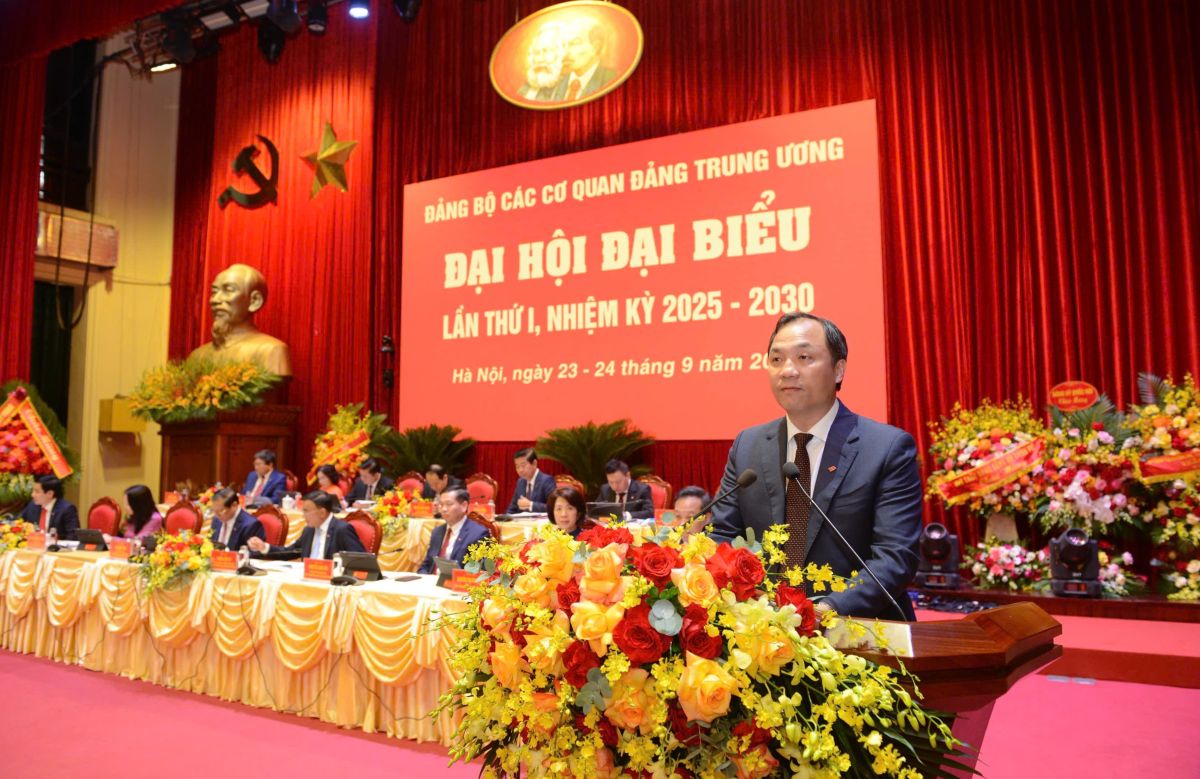 TCCS - Với chủ đề “Tiếp tục đổi mới mạnh mẽ tư duy và hành động, nâng tầm công tác tham mưu chiến lược; xây dựng Đảng bộ trong sạch, vững mạnh tiêu biểu; hoàn thành xuất sắc các mục tiêu, nhiệm vụ đề ra”, Đại hội đại biểu Đảng bộ các cơ quan Đảng Trung ương lần thứ I, nhiệm kỳ 2025 - 2030 được tổ chức trong 2 ngày 23 và 24-9-2025, đã thành công tốt đẹp.