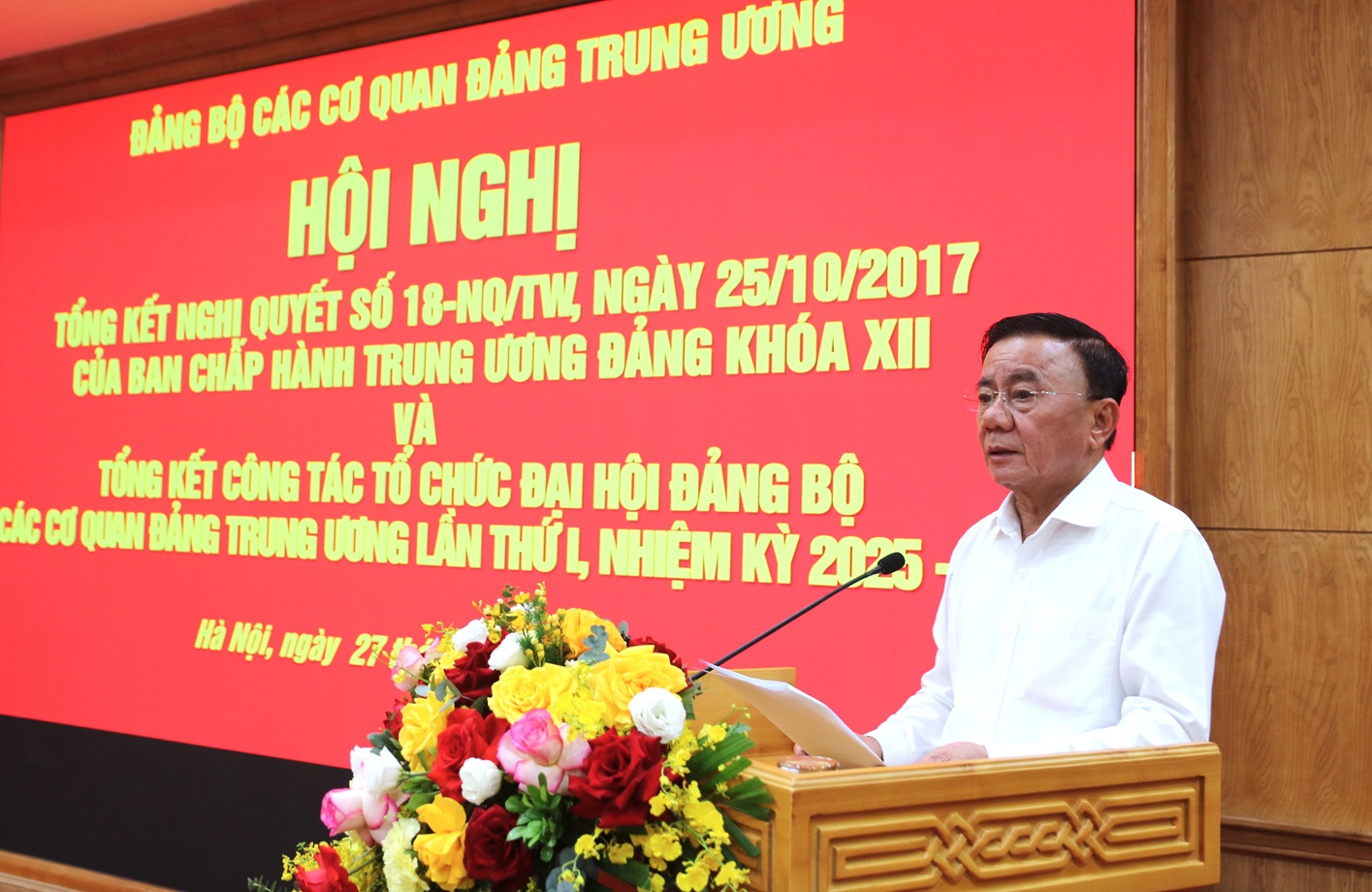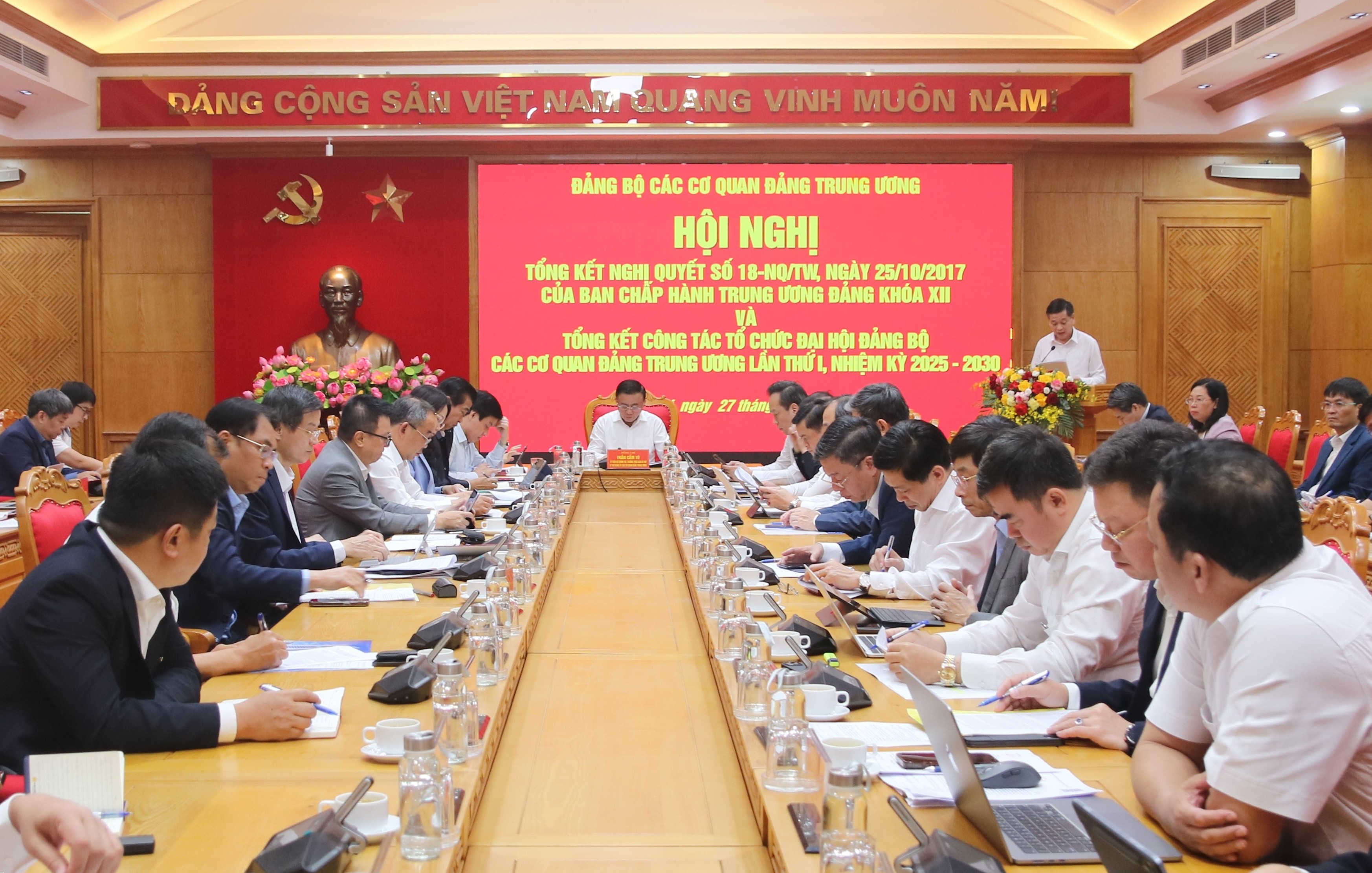 Báo cáo tổng kết việc thực hiện Nghị quyết số 18-NQ/TW, đồng chí Nguyễn Long Hải, Ủy viên dự khuyết Trung ương Đảng, Phó Bí thư Thường trực Đảng ủy các cơ quan Đảng Trung ương cho biết, sau 8 năm thực hiện Nghị quyết số 18-NQ/TW, nhất là từ tháng 10-2024 đến nay, Đảng bộ Khối các cơ quan Trung ương trước đây, nay là Đảng bộ các cơ quan Đảng Trung ương đã tích cực triển khai, đạt được nhiều kết quả nổi bật, toàn diện.