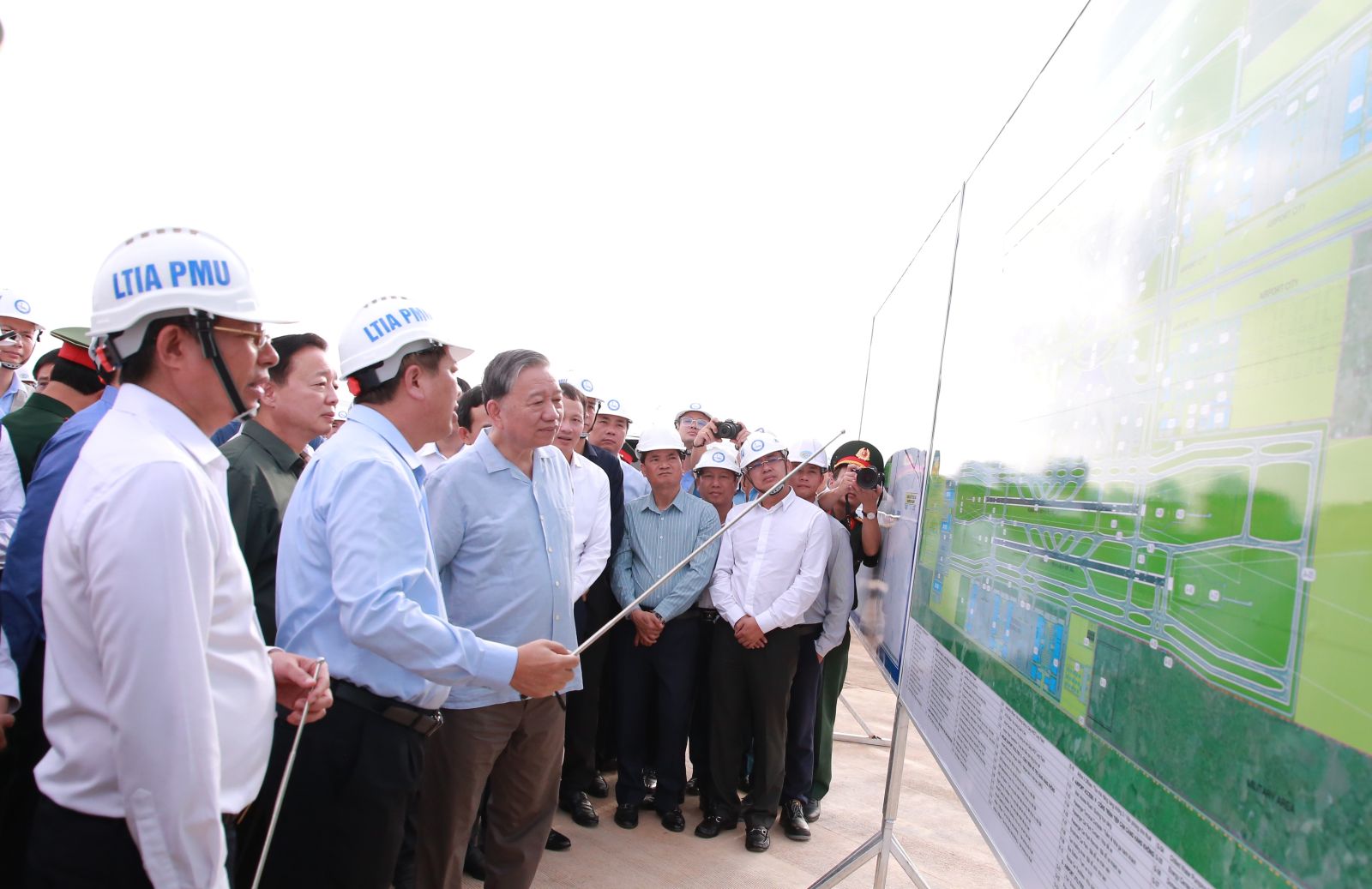 Tổng Bí thư ghi nhận, biểu dương những nỗ lực vượt bậc mà Chính phủ và các bộ, ngành trung ương, địa phương, chủ đầu tư dự án, các liên doanh, nhà thầu đã tích cực triển khai, hoàn thành nhiều hạng mục công trình, bảo đảm đúng tiến độ. Cảng hàng không quốc tế Long Thành không chỉ là cảng hàng không mà là động lực chiến lược cho sự phát triển kinh tế - xã hội của đất nước, đặc biệt là ở khu vực kinh tế trọng điểm phía Nam.
