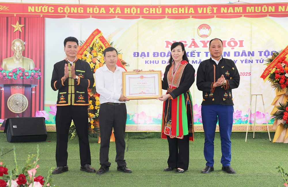 Chủ tịch Ủy ban Mặt trận Tổ quốc tỉnh Nguyễn Thị Hà trao Bằng khen của Chủ tịch Ủy ban nhân dân tỉnh cho khu dân cư thôn Mậu_Ảnh: bacninh.gov.vn