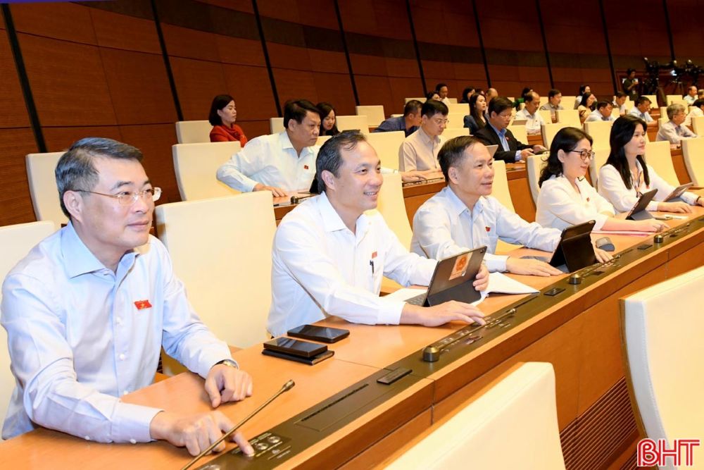 Các đại biệu dự Kỳ họp thứ X, Quốc hội khóa XV bấm nút thông qua nghị quyết_ Ảnh: baohatinh.vn