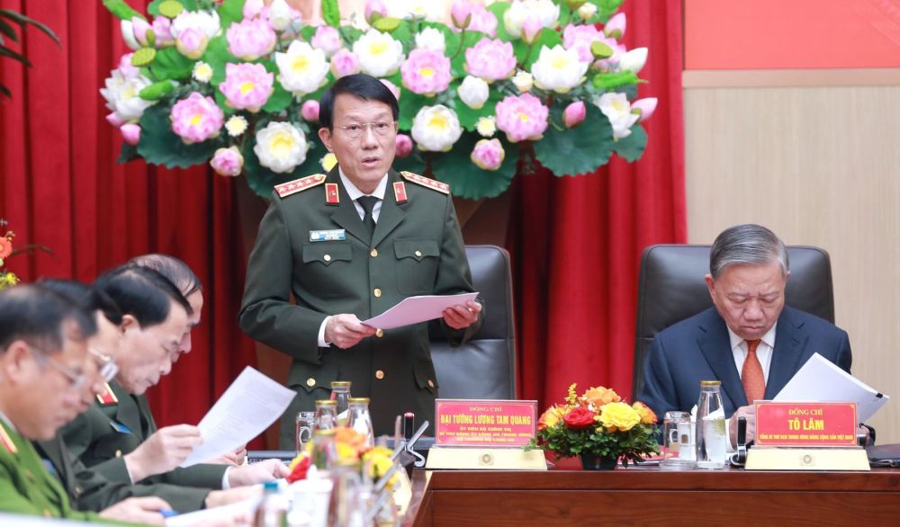 Thay mặt Đảng ủy Công an Trung ương, Đại tướng Lương Tam Quang, Ủy viên Bộ Chính trị, Bí thư Đảng ủy Công an Trung ương, Bộ trưởng Bộ Công an trân trọng cảm ơn và nghiêm túc tiếp thu những ý kiến tham gia góp ý của các đại biểu, ý kiến chỉ đạo của đồng chí Tổng Bí thư, Chủ tịch nước, Thủ tướng Chính phủ, nhất là gợi ý của đồng chí Tổng Bí thư về các nhiệm vụ mà lực lượng công an nhân dân cần tập trung thực hiện trong thời gian tới.