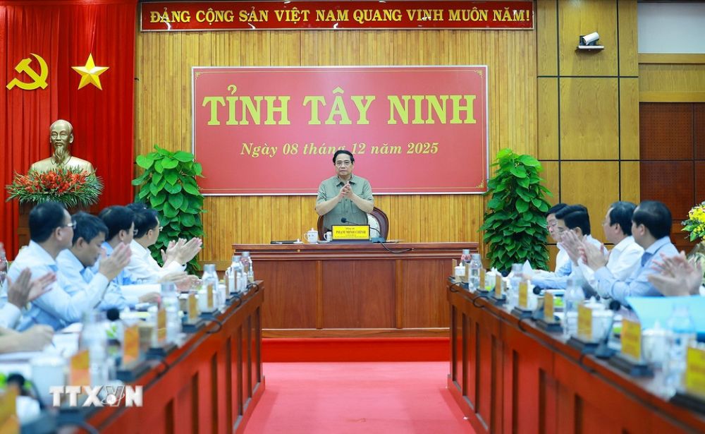 TCCS - Ngày 8-12-2025, nhân chuyến công tác tham dự Lễ khai trương cặp Cửa khẩu quốc tế Tân Nam - Meun Chey, Ủy viên Bộ Chính trị, Thủ tướng Chính phủ Phạm Minh Chính và Đoàn công tác đã làm việc với Ban Thường vụ Tỉnh uỷ Tây Ninh về tình hình kinh tế - xã hội năm 2025; phương hướng, nhiệm vụ năm 2026 và giải quyết các đề xuất, kiến nghị của tỉnh thúc đẩy Tây Ninh phát triển nhanh, bền vững.
