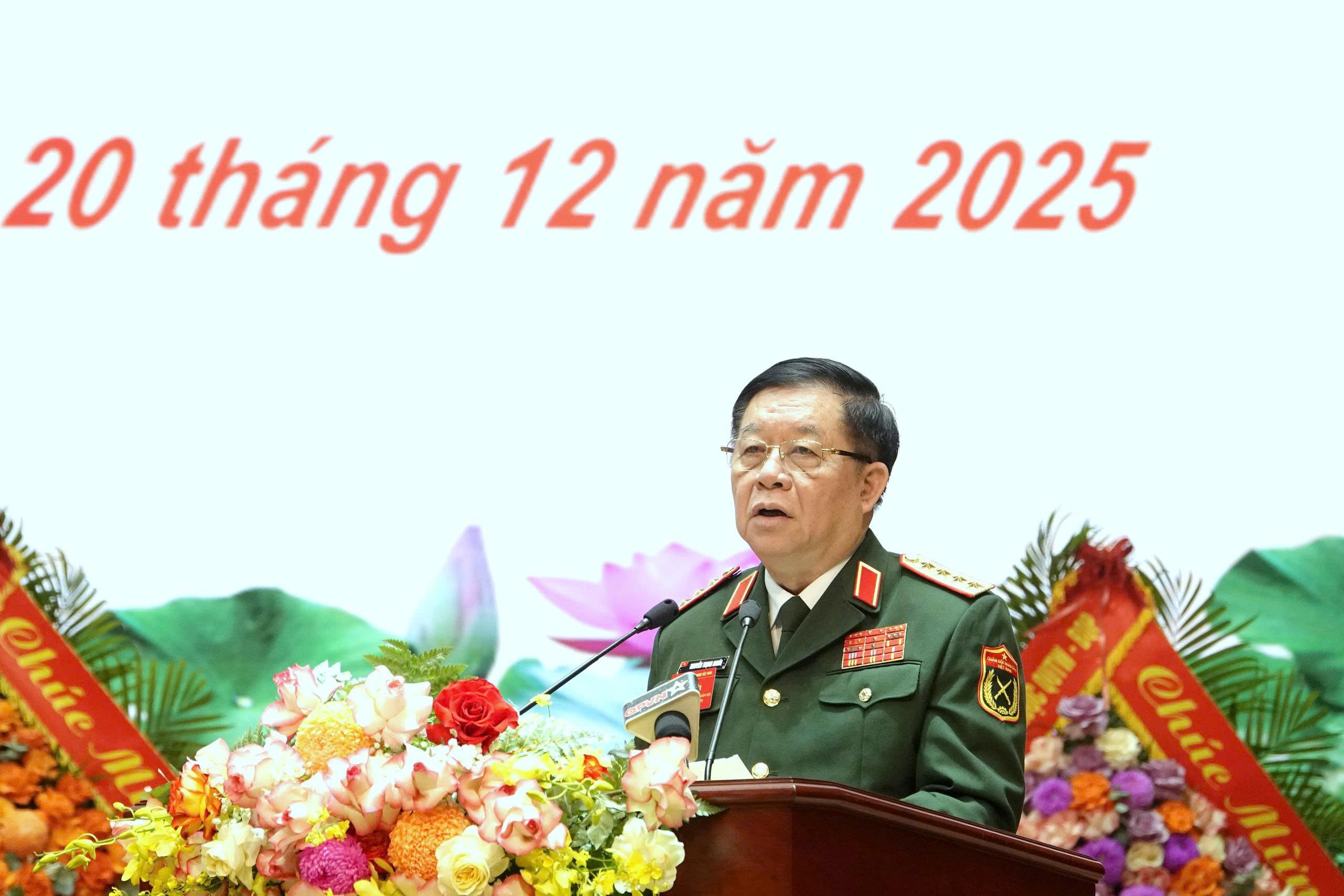 Đại hội đại biểu phụ nữ quân đội lần thứ VIII, nhiệm kỳ 2025 - 2030 vinh dự đón nhận lẵng hoa chúc mừng của đồng chí Tô Lâm, Tổng Bí thư Ban Chấp hành Trung ương Đảng, Bí thư Quân ủy Trung ương và sự tham dự của các đồng chí: Đại tướng Phan Văn Giang, Ủy viên Bộ Chính trị, Phó Bí thư Quân ủy Trung ương, Bộ trưởng Bộ Quốc phòng; Đại tướng Nguyễn Trọng Nghĩa, Ủy viên Bộ Chính trị, Bí thư Trung ương Đảng, Ủy viên Thường vụ Quân ủy Trung ương, Chủ nhiệm Tổng cục Chính trị Quân đội nhân dân Việt Nam.