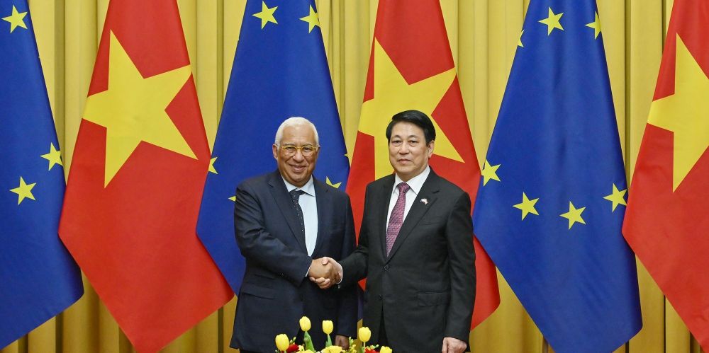 Ủy viên Bộ Chính trị, Chủ tịch nước Lương Cường và Chủ tịch Hội đồng châu Âu Antonio Costa_Ảnh: nhandan.vn