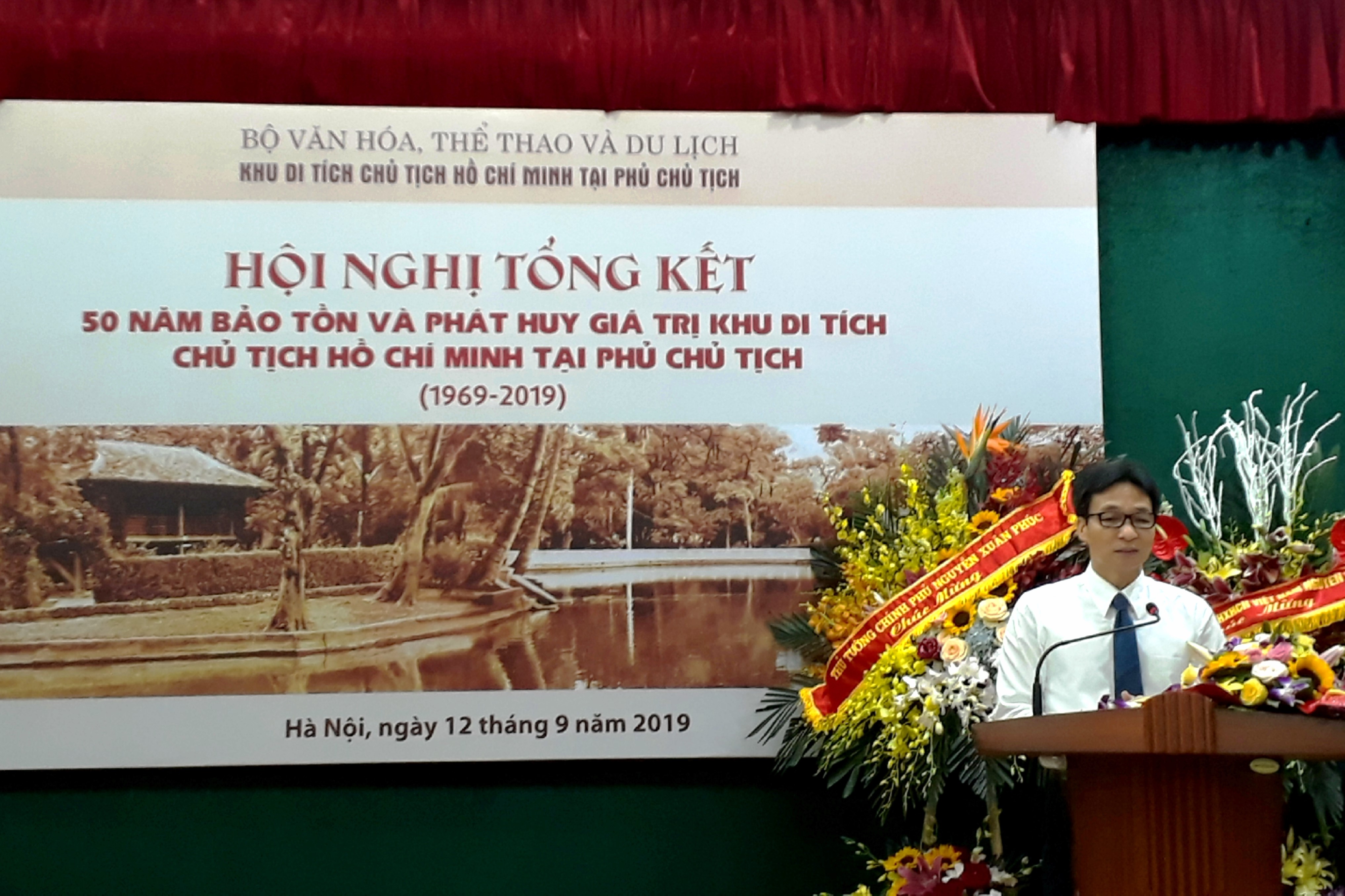 Phát biểu tại Hội nghị, Phó Thủ tướng Vũ Đức Đam đánh giá cao tâm huyết và những nỗ lực của các cán bộ, nhân viên và người lao động qua các thế hệ của Khu di tích trong việc bảo tồn và phát huy các giá trị của Khu di tích Chủ tịch Hồ Chí Minh tại Phủ Chủ tịch. Phó Thủ tướng nhấn mạnh, nửa thế kỷ qua, Khu di tích đã trở thành nơi hội tụ, lan tỏa những giá trị nhân văn cao cả, tư tưởng, đạo đức, phong cách Hồ Chí Minh. Khu di tích Chủ tịch Hồ Chí Minh tại Phủ Chủ tịch là một địa chỉ vô cùng thiêng liêng, là nơi mọi người dân trong nước và bạn bè quốc tế đến để tưởng nhớ Bác, hiểu về công lao to lớn, cảm nhận sâu sắc cốt cách, tâm hồn, cuộc đời và sự nghiệp vĩ đại của Bác và đặc biệt là nơi học tập, làm theo tấm gương vĩ đại của Người. Đến đây để mỗi người lắng đọng, suy ngẫm về bản thân để tu dưỡng, rèn luyện cho mình “trong sáng hơn”, tốt đẹp hơn, sống và làm việc xứng đáng với Bác. Chính vì các giá trị văn hóa mang tầm quốc tế như vậy nên việc bảo tồn và phát huy những giá trị văn hóa tại Khu di tích Chủ tịch Hồ Chí Minh tại Phủ Chủ tịch là trách nhiệm thiêng liêng không chỉ của Khu di tích, của ngành văn hóa mà là của toàn dân Việt Nam. Không chỉ thế, noi gương Bác, mỗi cán bộ, đảng viên và toàn dân ta cần không ngừng đoàn kết, cố gắng thực hiện thắng lợi sự nghiệp đổi mới đất nước, hoàn thành tâm nguyện của Bác kính yêu, đưa nước ta sánh vai với các cường quốc năm châu trên thế giới./.
