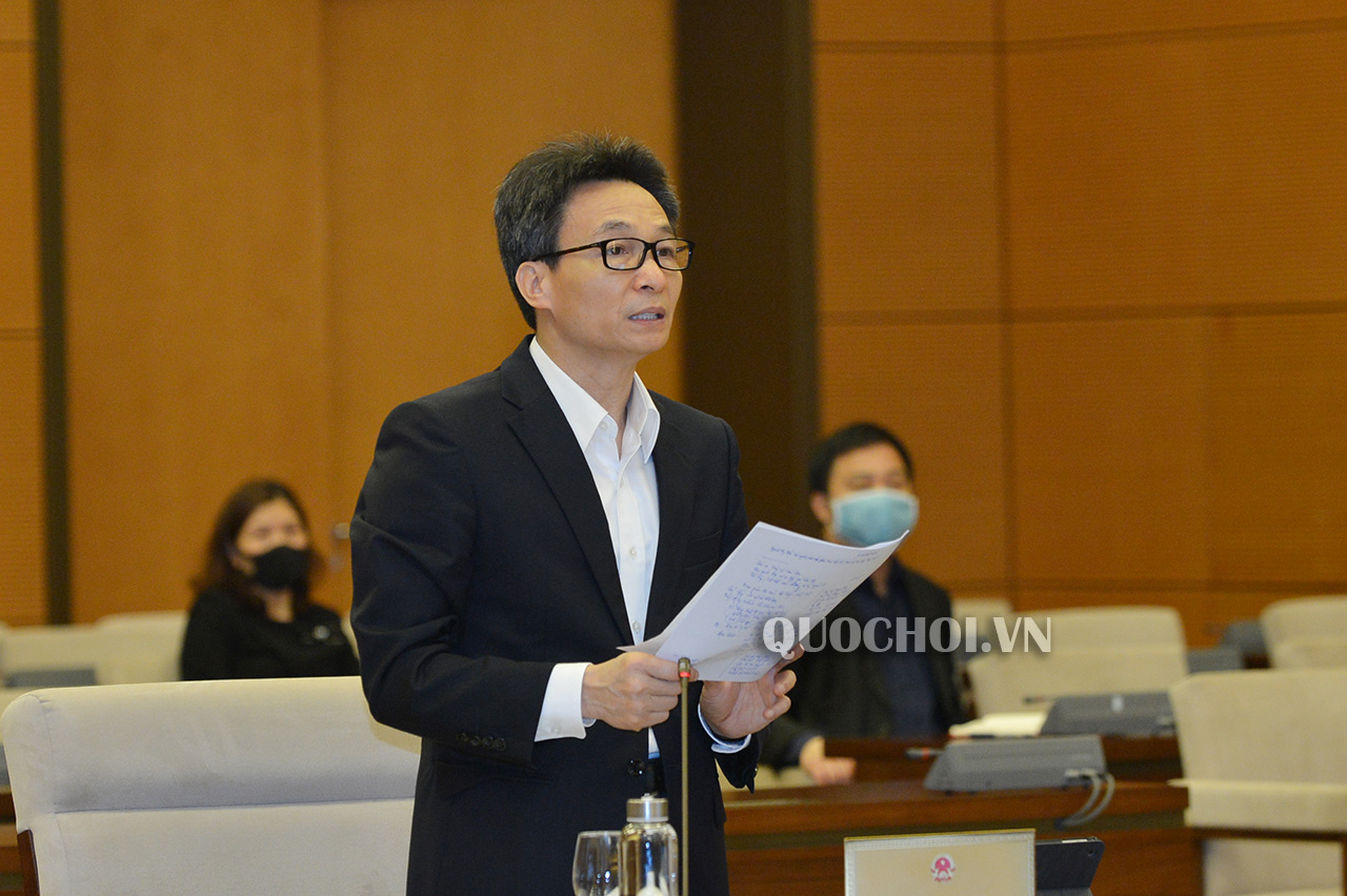 Ủy viên Trung ương Đảng, Phó Thủ tướng Vũ Đức Đam thay mặt Chính phủ báo cáo về tình hình dịch COVID-19 và các giải pháp, phương án phòng, chống dịch của Việt Nam _ Ảnh: quochoi.vn
