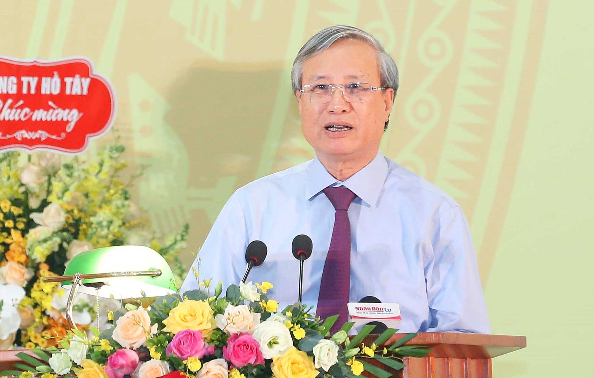 Đồng chí Trần Quốc Vượng, Ủy viên Bộ Chính trị, Thường trực Ban Bí thư phát biểu chỉ đạo đại hội_Ảnh: TTXVN