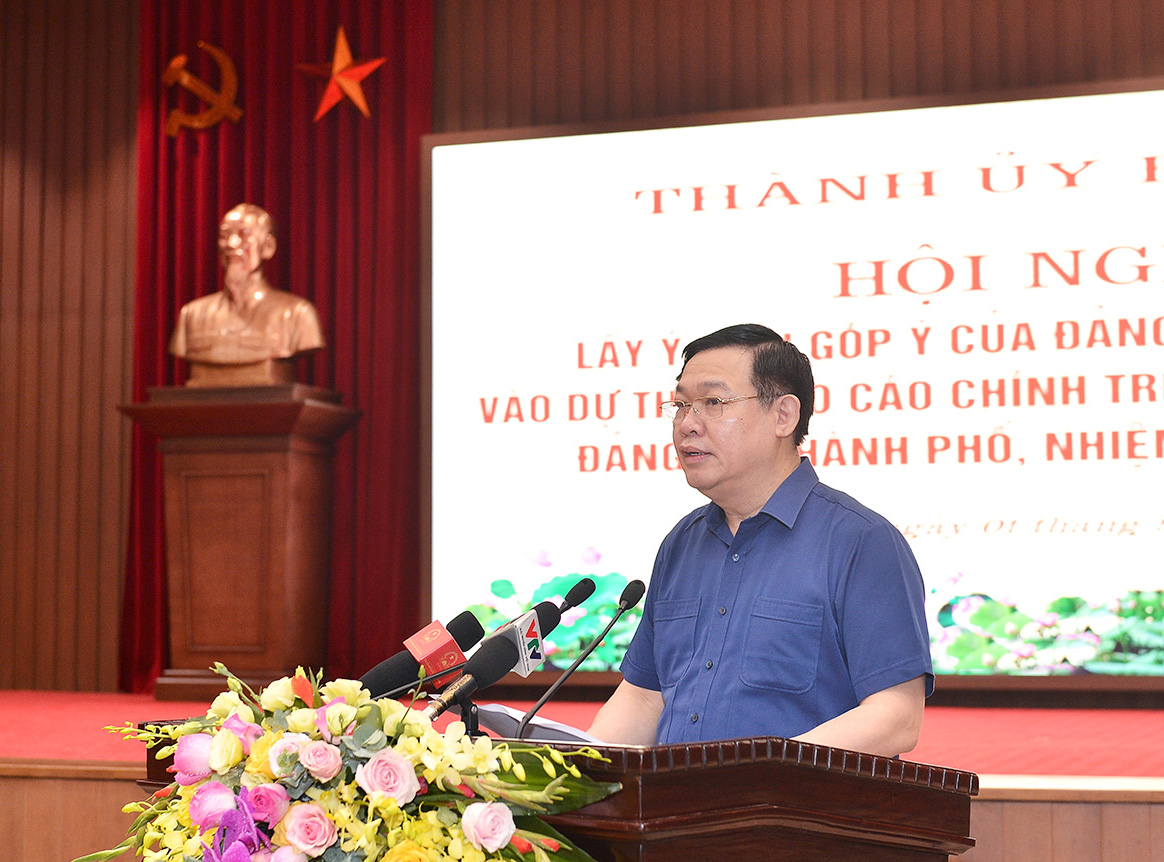 Phát biểu khai mạc, Bí thư Thành ủy Hà Nội Vương Đình Huệ cho biết, Hà Nội dự kiến tổ chức Đại hội đại biểu lần thứ XVII Đảng bộ thành phố vào cuối tháng 10-2020. Bí thư Thành ủy Hà Nội mong muốn các đại biểu với trách nhiệm, tình cảm và tâm huyết đối với Thủ đô đóng góp ý kiến vào dự thảo Báo cáo chính trị Đại hội XVII Đảng bộ thành phố, trong đó tập trung vào những vấn đề, quan điểm, mục tiêu lớn đối với phương hướng phát triển Thủ đô trong nhiệm kỳ 2020 - 2025.