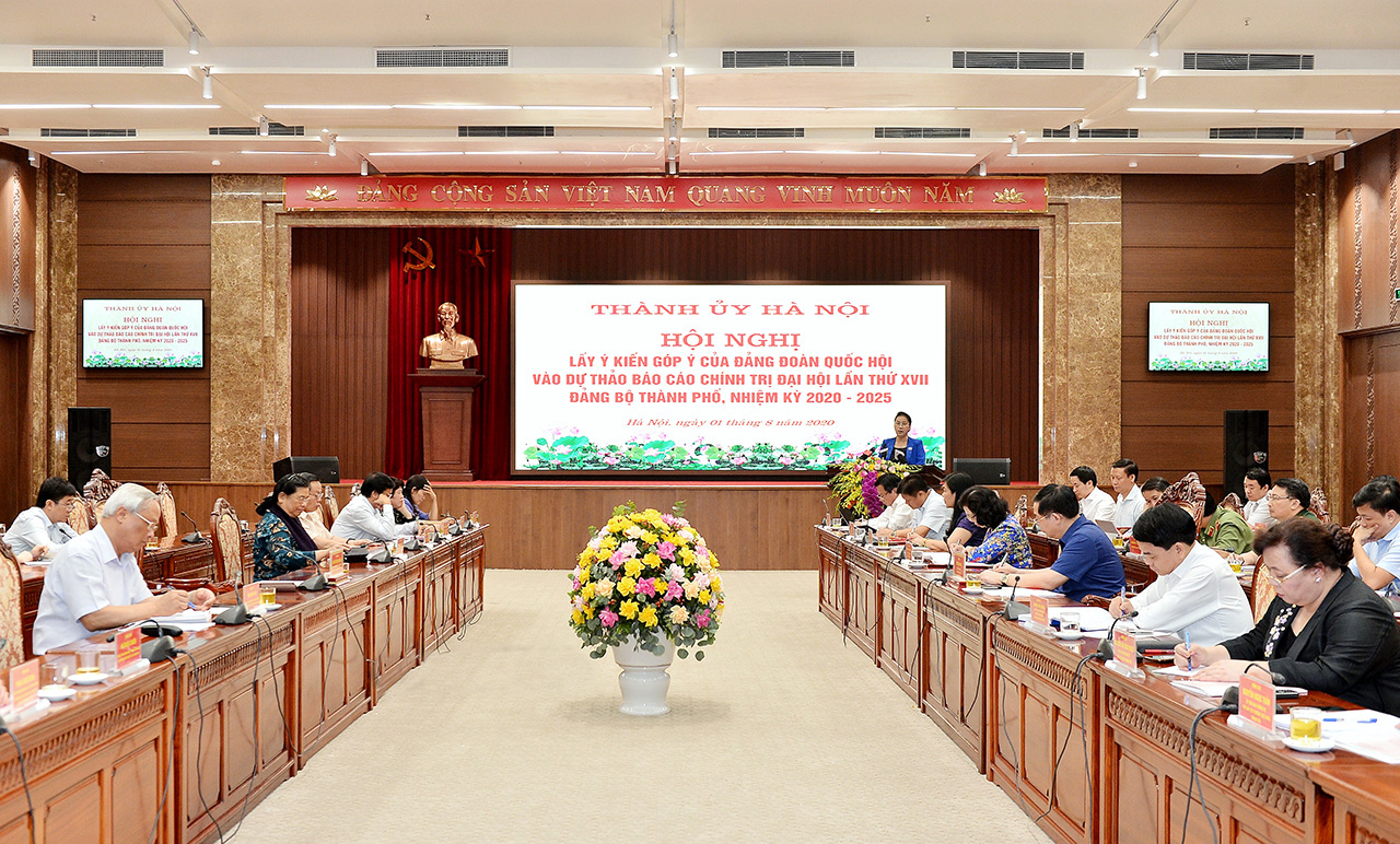 Đánh giá tổng thể về dự thảo Báo cáo chính trị Đại hội đại biểu lần thứ XVII Đảng bộ thành phố Hà Nội, nhiệm kỳ 2020 - 2025, các ý kiến thành viên Đảng đoàn Quốc hội đánh giá dự thảo được chuẩn bị công phu, thể hiện được tính bao quát, thống nhất trong nhận định, đánh giá, phương hướng, mục tiêu chung. Phần đánh giá kết quả thực hiện đã bám sát 14 nhiệm vụ, giải pháp trọng tâm được đề ra tại Nghị quyết Đại hội XVI của Đảng bộ thành phố. Phần mục tiêu tổng quát được xây dựng cho giai đoạn 5 năm 2020 - 2025, có định hướng đến năm 2030, tầm nhìn đến 2045 theo tinh thần văn kiện Đại hội XIII của Đảng…