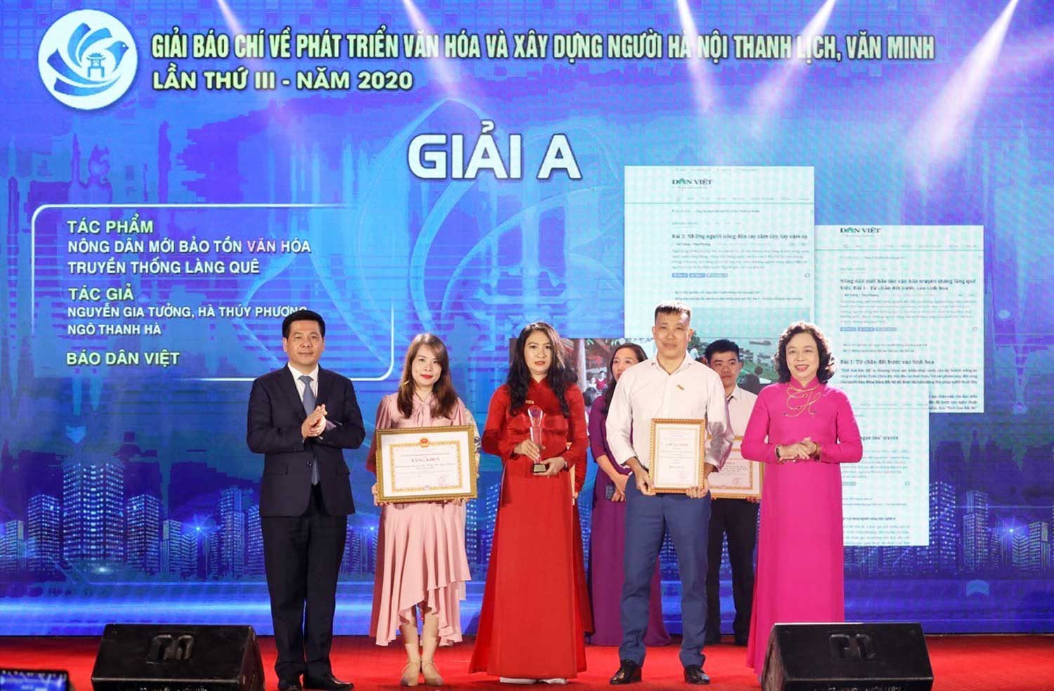 Thành ủy Hà Nội trao giải thưởng báo chí về xây dựng Đảng và phát triển văn hóa lần thứ ba năm 2020