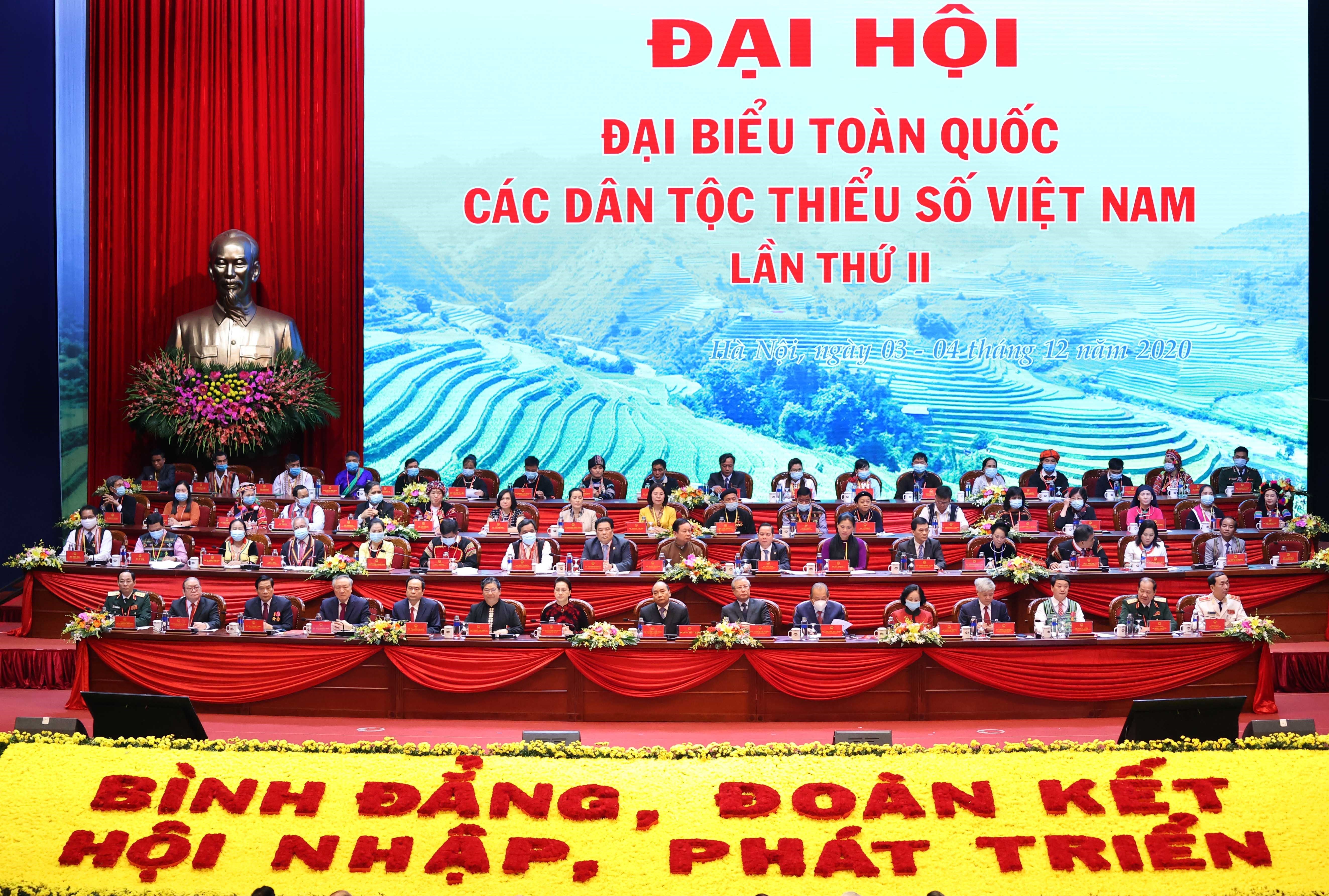 TCCS - Ngày 4-12-2020, Đại hội đại biểu các dân tộc thiểu số lần thứ II năm 2020 chính thức khai mạc tại Thủ đô Hà Nội với chủ đề: “Dưới lá cờ vẻ vang của Đảng, các dân tộc bình đẳng, đoàn kết, tôn trọng, giúp đỡ nhau, phát huy nội lực cùng phát triển với đất nước”. Ủy viên Bộ Chính trị, Thủ tướng Chính phủ Nguyễn Xuân Phúc dự và thay mặt lãnh đạo Đảng, Nhà nước phát biểu chỉ đạo Đại hội.