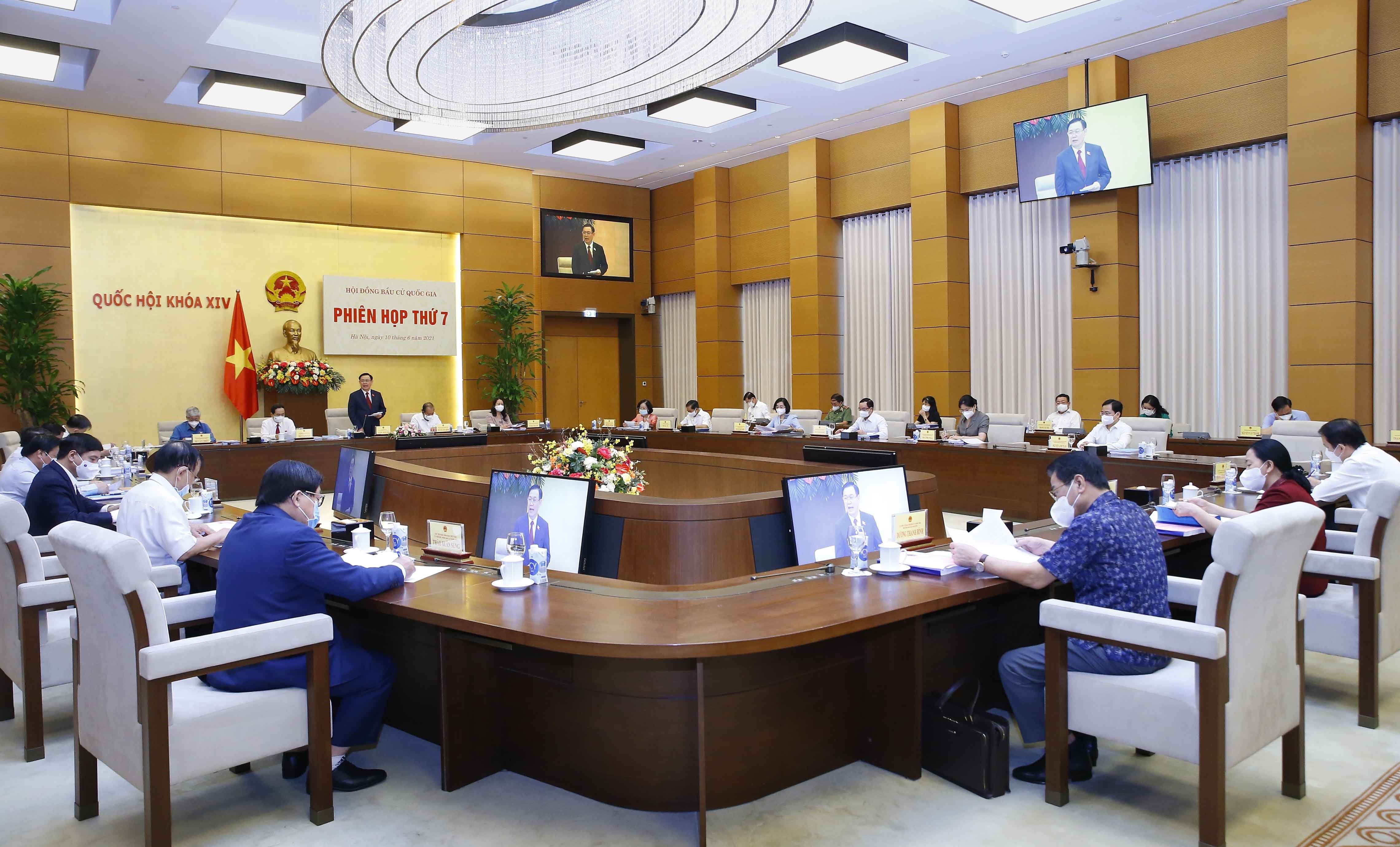 TCCS - Ngày 10-6-2021, tại nhà Quốc hội, Ủy viên Bộ Chính trị, Chủ tịch Quốc hội, Chủ tịch Hội đồng Bầu cử quốc gia Vương Đình Huệ chủ trì Phiên họp thứ 7, Hội đồng Bầu cử quốc gia.