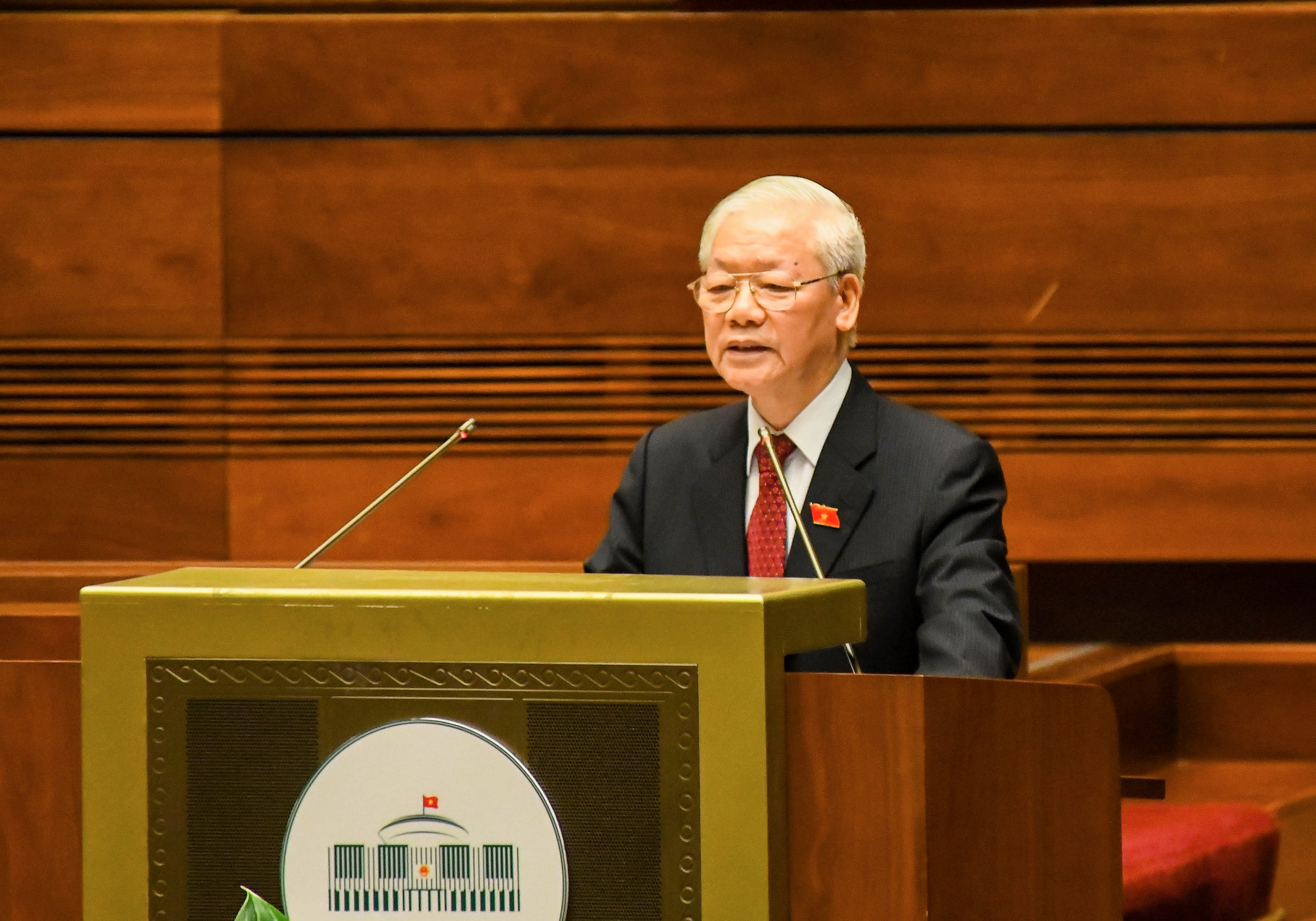 Tổng Bí thư Nguyễn Phú Trọng phát biểu tại phiên khai mạc Kỳ họp thứ nhất, Quốc hội khóa XV _ Ảnh: Thu Thanh
