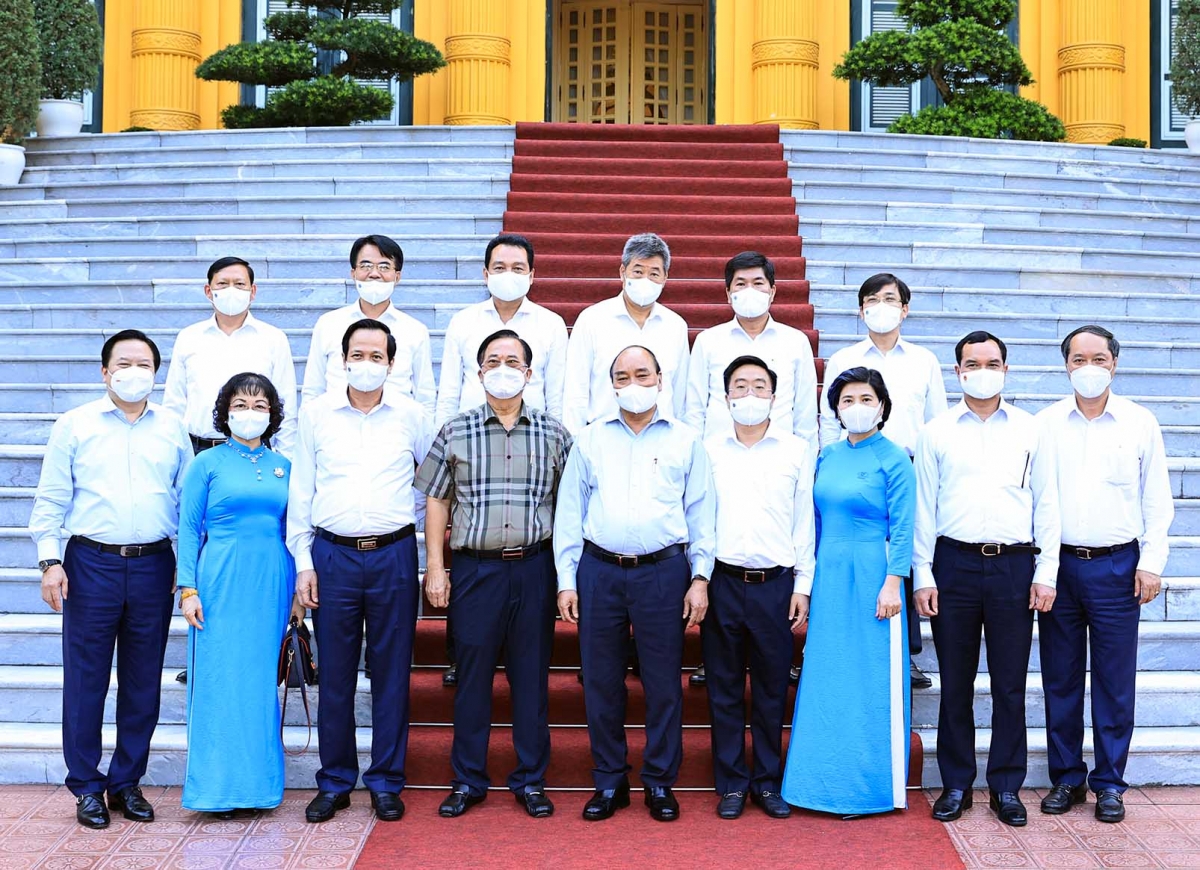 TCCS - Ngày 3-8-2021, tại Hà Nội, Ủy viên Bộ Chính trị, Chủ tịch nước Nguyễn Xuân Phúc gặp mặt các đại diện tiêu biểu của ngành dệt may Việt Nam - lĩnh vực sản xuất có gần 3 triệu người lao động, 13 nghìn doanh nghiệp đang nỗ lực khắc phục khó khăn duy trì sản xuất trong bối cảnh dịch COVID-19 đang diễn biến phức tạp trên địa bàn cả nước.