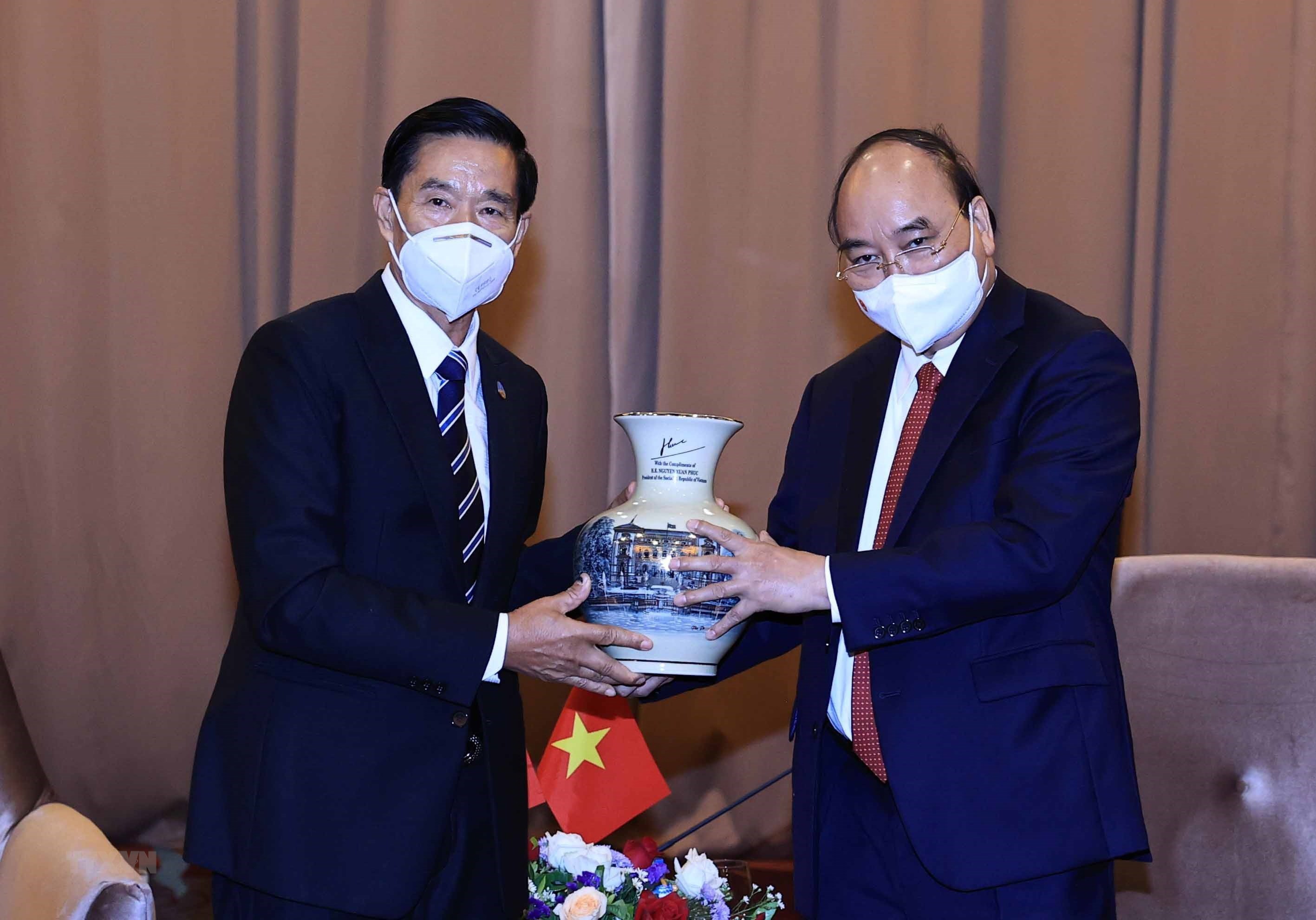 Chủ tịch nước Nguyễn Xuân Phúc bày tỏ vui mừng trở lại thăm đất nước Lào tươi đẹp trên cương vị mới; chân thành cảm ơn Tổng Bí thư, Chủ tịch nước Thongloun Sisoulith, các đồng chí lãnh đạo Đảng, Nhà nước và nhân dân Lào đã dành cho đoàn sự đón tiếp trọng thị, chu đáo, ấm áp và thắm tình hữu nghị; chúc mừng những thành tựu to lớn, toàn diện và có ý nghĩa quan trọng mà Đảng, Nhà nước và nhân dân Lào đã đạt được trong những năm qua. Chia sẻ những khó khăn của Lào trong bối cảnh dịch bệnh COVID-19 hiện nay, Chủ tịch nước Nguyễn Xuân Phúc tin tưởng dưới sự lãnh đạo của Đảng Nhân dân Cách mạng Lào do Tổng Bí thư Thongloun Sisoulith đứng đầu, nhân dân Lào anh em sẽ vượt qua mọi khó khăn, thực hiện thắng lợi Nghị quyết Đại hội Đảng lần thứ XI và Kế hoạch phát triển kinh tế - xã hội quốc gia 5 năm lần thứ IX giai đoạn 2021 - 2025, không ngừng nâng cao vị thế và vai trò trên trường quốc tế.
