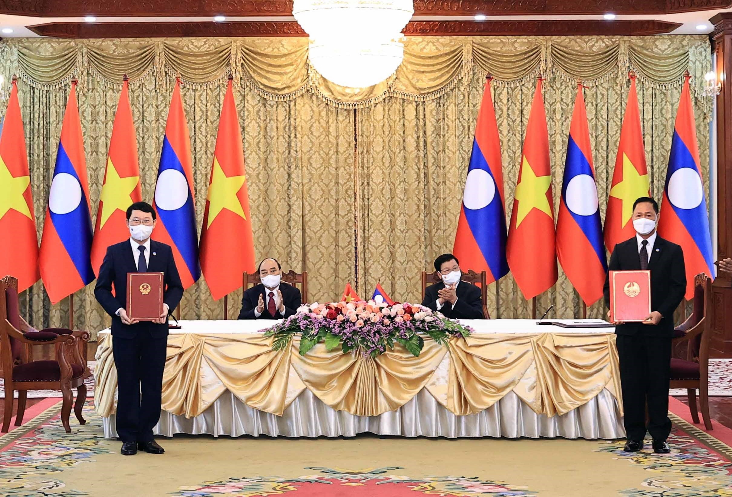 Các văn kiện hợp tác ký kết và trao đổi gồm: Thỏa thuận hợp tác giữa hai Văn phòng Chủ tịch nước giai đoạn 2021 - 2025 do Chủ nhiệm Văn phòng Chủ tịch nước Lê Khánh Hải và Chủ nhiệm Văn phòng Chủ tịch nước Lào Khemmani Pholsena ký; Chương trình hợp tác năm 2022 giữa hai Bộ Tư pháp do Bộ trưởng Bộ Tư pháp Lê Thành Long và Bộ trưởng Bộ Tư pháp Lào Phayvy Sibualipha ký; Văn bản Kế hoạch hợp tác bổ sung năm 2020 giữa hai Bộ Công an do Bộ trưởng Bộ Công an Tô Lâm và Bộ trưởng Bộ Công an Lào Vilay Lakhamphong ký; Bản ghi nhớ về hợp tác phòng, chống ma túy; Biên bản hợp tác giữa hai Bộ Quốc phòng về xây dựng công trình Trường Văn hoá dân tộc quân đội tại Lào do Bộ trưởng Bộ Quốc phòng Phan Văn Giang và Phó Thủ tướng, Bộ trưởng Bộ Quốc phòng Lào Chansamone Chanyalath; Ý định thư giữa hai Bộ Quốc phòng về hợp tác tìm kiếm, cứu nạn do Bộ trưởng Bộ Quốc phòng Phan Văn Giang và Phó Thủ tướng, Bộ trưởng Bộ Quốc phòng Lào Chansamone Chanyalath ký; Thỏa thuận hợp tác giữa tỉnh Bắc Giang và tỉnh Xaysomboun giai đoạn 2021 - 2025, do Chủ tịch Ủy ban nhân dân tỉnh Lê Ánh Dương và Tỉnh trưởng Khamlieng Uthakaysone ký.