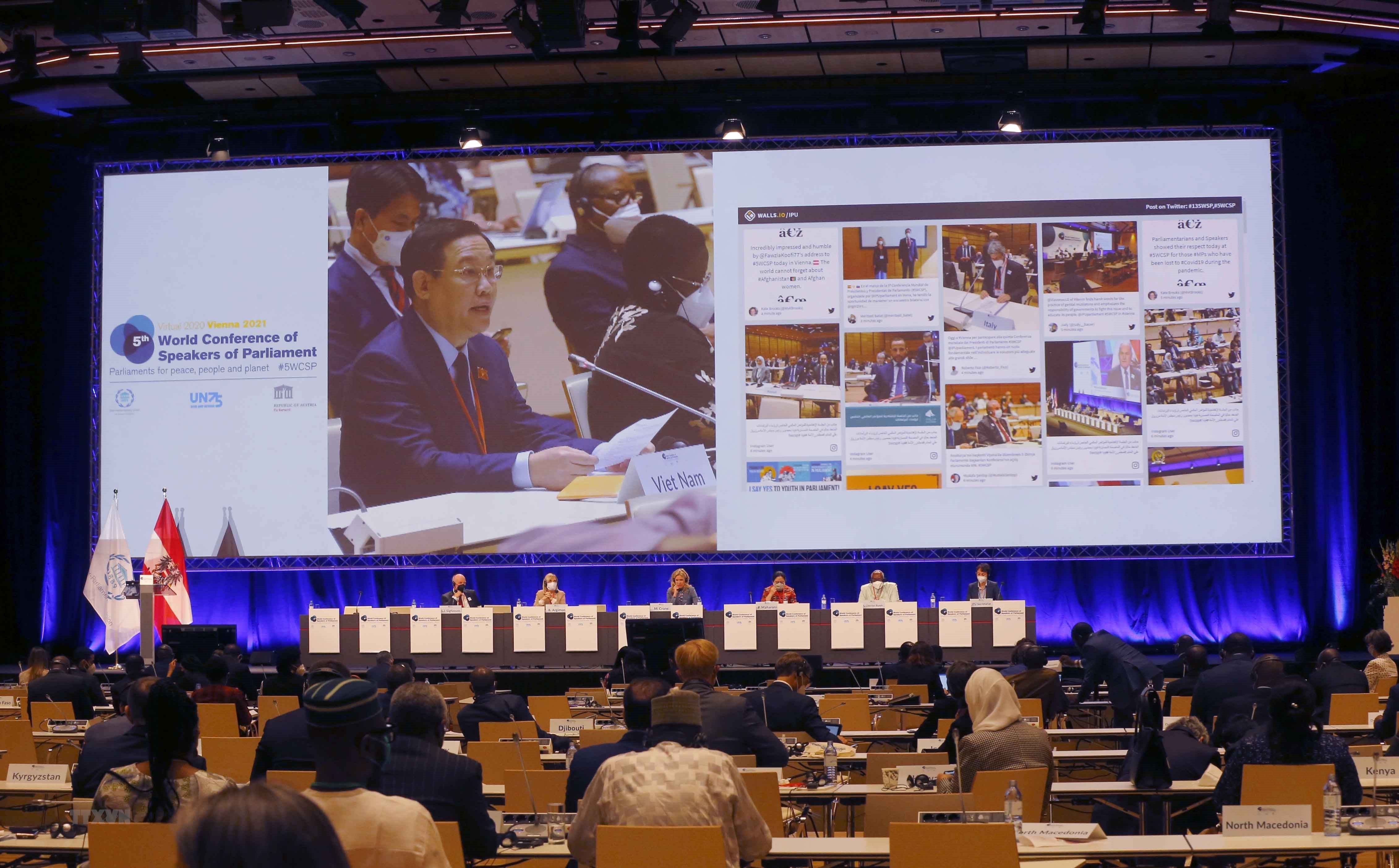 Hội nghị các Chủ tịch Quốc hội thế giới lần thứ 5 do Liên minh Nghị viện thế giới IPU, Liên hợp quốc và Quốc hội Cộng hòa Áo phối hợp tổ chức từ ngày 6-9 đến ngày 8-9-2021. Chủ đề tổng quát của hội nghị là “Sự dẫn dắt nghị viện vì chủ nghĩa đa phương hiệu quả hơn nhằm đem lại hòa bình và phát triển bền vững cho người dân và Trái Đất này”.
