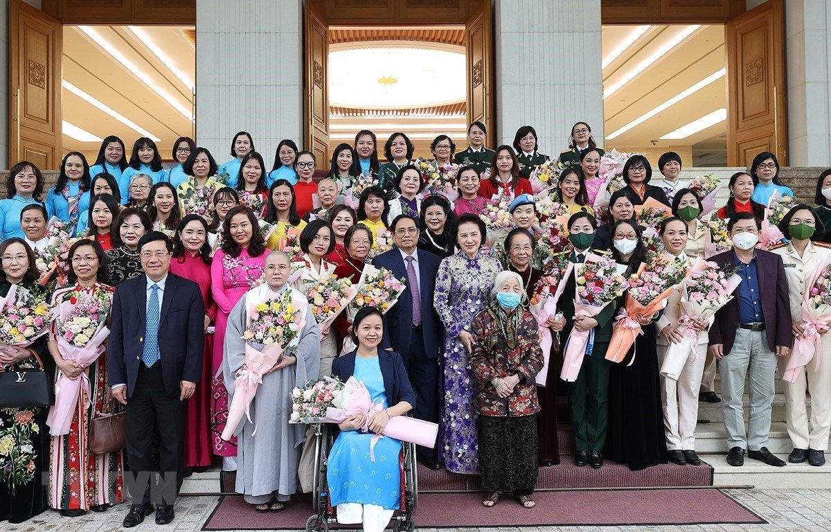 Phát biểu tại cuộc gặp mặt, Thủ tướng Chính phủ Phạm Minh Chính khẳng định, xuyên suốt chiều dài lịch sử, phụ nữ Việt Nam luôn có vai trò đặc biệt, không những hoàn thành tốt thiên chức của mình mà còn lập nhiều chiến công trong các cuộc kháng chiến, đấu tranh giải phóng dân tộc. Trải qua chiến tranh, hàng triệu người con của dân tộc đã ngã xuống, để lại hàng triệu nỗi đau của phụ nữ Việt Nam. Theo Thủ tướng, chúng ta cũng chứng kiến dù ở bất cứ hoàn cảnh nào, vị trí công việc gì, phụ nữ Việt Nam cũng tỏa sảng phẩm chất “Anh hùng, bất khuất, trung hậu, đảm đang” mà Bác Hồ đã dành tặng cho phụ nữ Việt Nam.