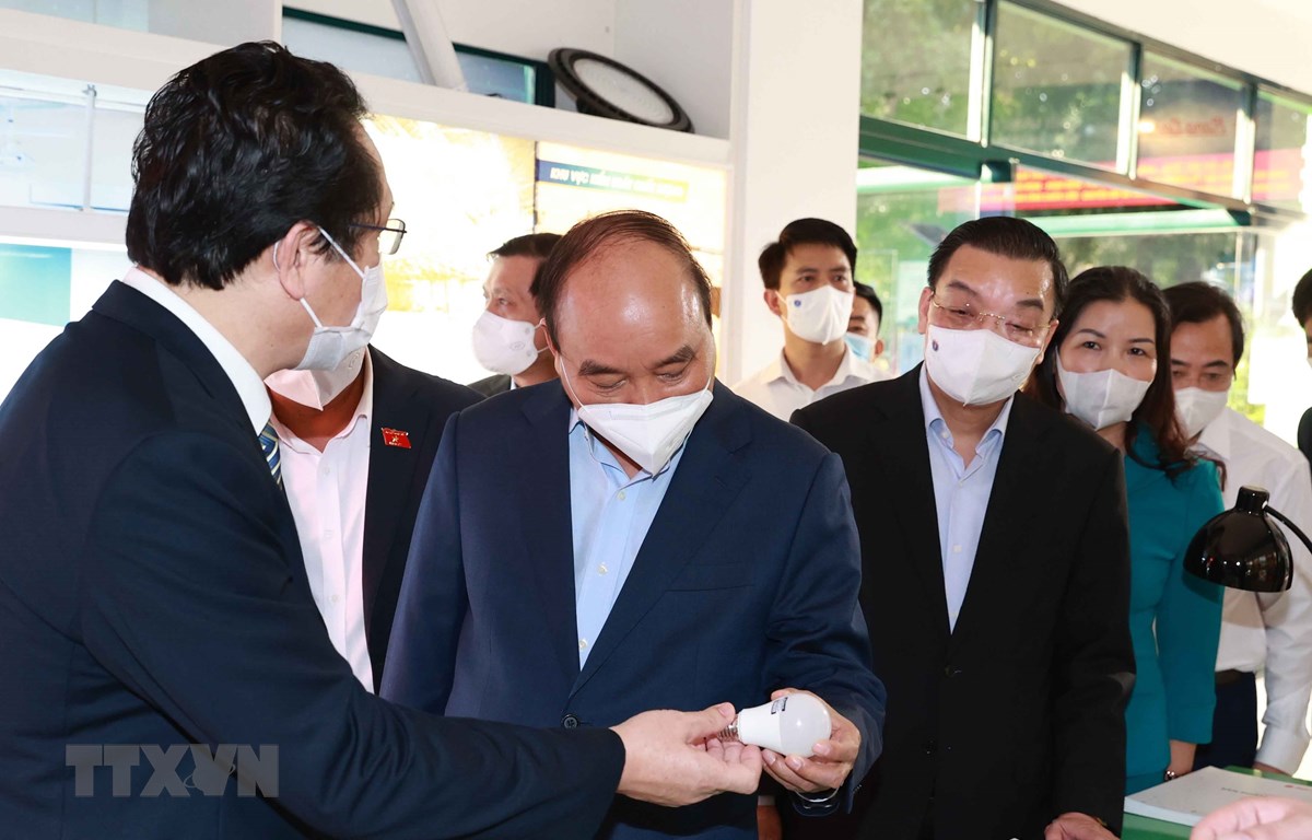 Chiều cùng ngày, Chủ tịch nước đã tới thăm Công ty Bóng đèn phích nước Rạng Đông do ông Nguyễn Đoàn Thăng, 78 tuổi, làm Tổng Giám đốc. Đây là một doanh nghiệp hàng đầu Việt Nam về sản xuất các thiết bị nguồn sáng LED; tiên phong phát triển hệ sinh thái 4.0 xanh - thông minh - vì sức khỏe hạnh phúc con người. Kiến tạo ngôi nhà thông minh, trường học thông minh, văn phòng thông minh, trang trại thông minh, đô thị thông minh.