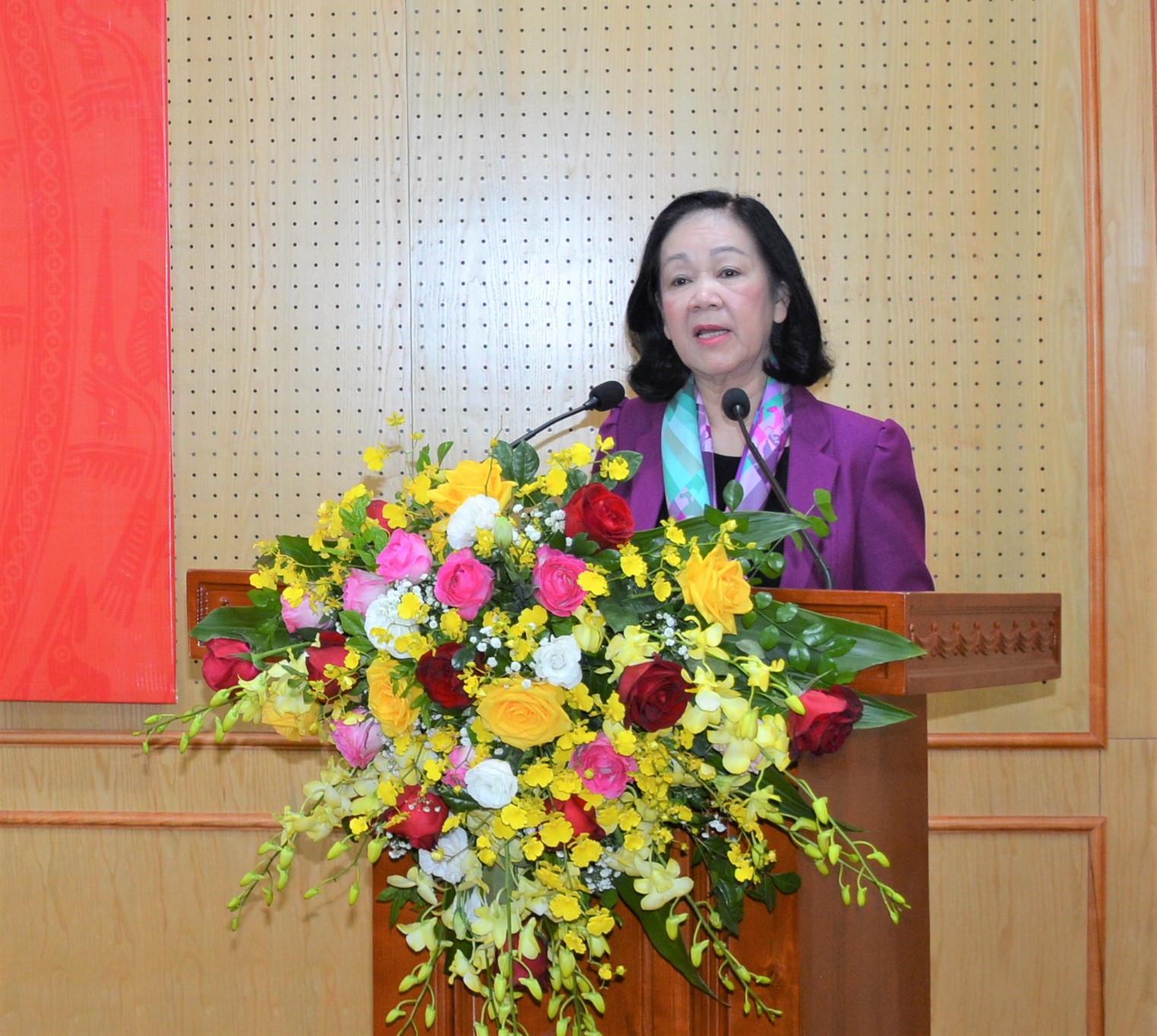 Tại Hội nghị, đồng chí Trương Thị Mai đã khái quát một số nội dung lớn trong mục tiêu, phương hướng của Nghị quyết Đại hội XIII của Đảng; thông tin một số điểm mới trong Kết luận số 21-KL/TW, ngày 25-10-2021, của Hội nghị lần thứ tư Ban Chấp hành Trung ương Đảng khóa XIII, về đẩy mạnh xây dựng, chỉnh đốn Đảng và hệ thống chính trị; kiên quyết ngăn chặn, đẩy lùi, xử lý nghiêm cán bộ, đảng viên suy thoái về tư tưởng chính trị, đạo đức, lối sống, biểu hiện “tự diễn biến”, “tự chuyển hóa”. Theo đó, Kết luận số 21-KL/TW không chỉ dừng lại ở xây dựng, chỉnh đốn Đảng, mà còn mở rộng ra toàn bộ hệ thống chính trị. Yêu cầu của Kết luận số 21-KL/TW là dựa vào nhân dân để xây dựng hệ thống chính trị trong sạch, vững mạnh, đề cao mở rộng dân chủ trong Đảng, làm hạt nhân mở rộng dân chủ trong toàn xã hội, gắn với tăng cường kỷ luật, kỷ cương.