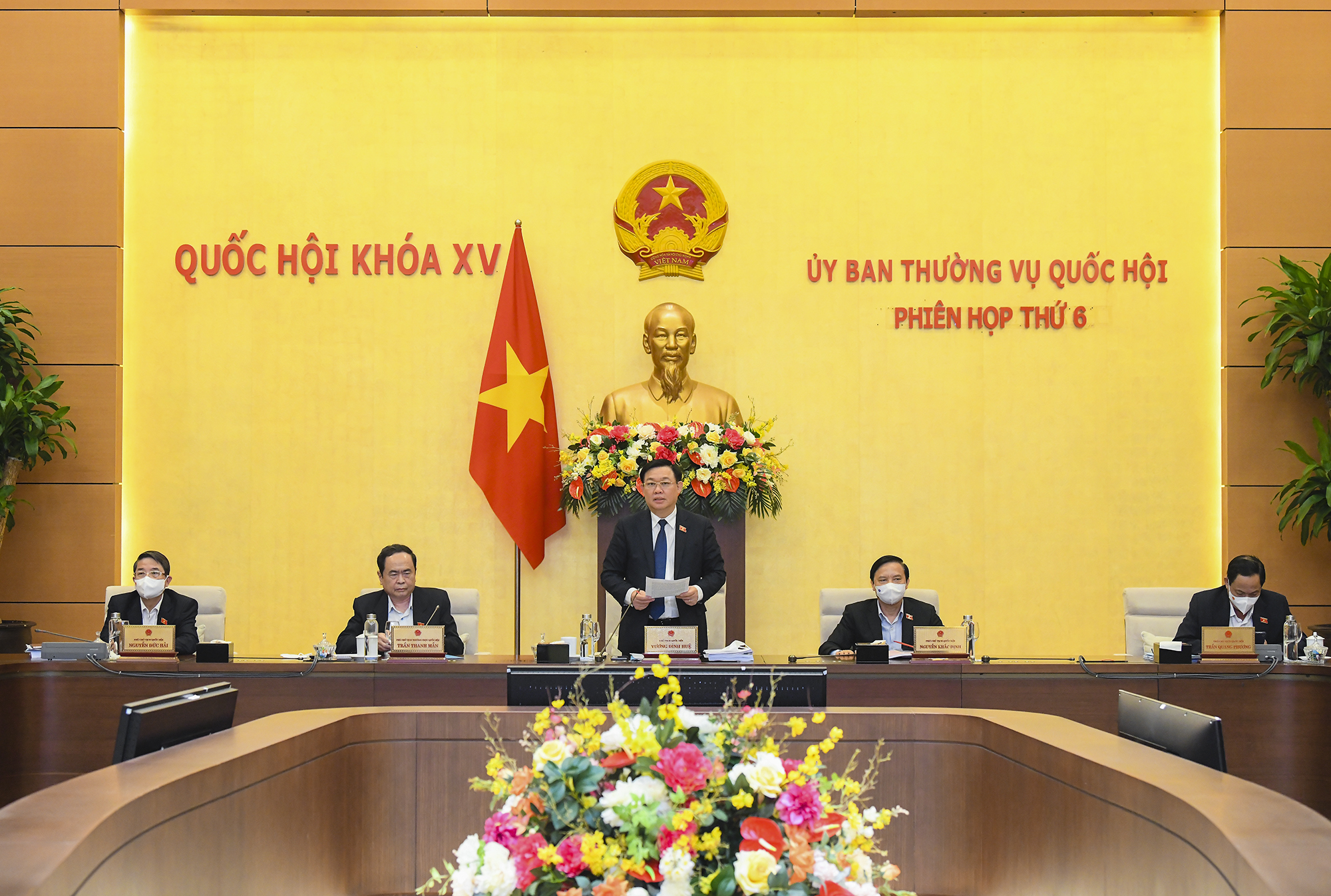 Khái quát những kết quả Phiên họp thứ 6 của Ủy ban Thường vụ Quốc hội, Chủ tịch Quốc hội Vương Đình Huệ cho biết, về việc chuẩn bị nội dung cho Kỳ họp bất thường của Quốc hội khóa XV, với sự chuẩn bị kỹ lưỡng và phối hợp chủ động giữa các cơ quan của Quốc hội, Chính phủ và các cơ quan hữu quan, Ủy ban Thường vụ Quốc hội đã xem xét, cho ý kiến nhất trí thông qua 3 nội dung cơ bản để trình Quốc hội xem xét tại Kỳ họp bất thường, dự kiến tổ chức vào đầu tháng 1-2022.