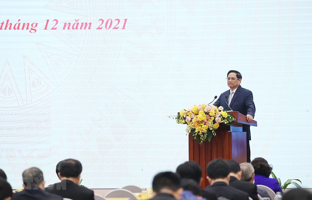Phát biểu chỉ đạo và kết luận hội nghị, Thủ tướng Chính phủ Phạm Minh Chính cho biết, năm 2021, đất nước có nhiều sự kiện quan trọng, tổ chức rất thành công Đại hội lần thứ XIII của Đảng, bầu cử Đại biểu Quốc hội khóa XV và hội đồng nhân dân các cấp nhiệm kỳ 2021 - 2026, kiện toàn các chức danh trong hệ thống chính trị, song đại dịch COVID-19 tiếp tục diễn biến phức tạp, ảnh hưởng nhiều mặt.