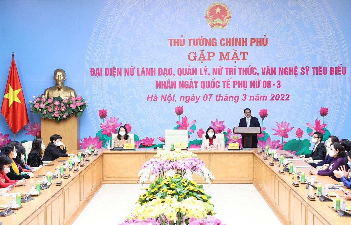 Phát biểu tại buổi gặp mặt, Thủ tướng Chính phủ Phạm Minh Chính cho rằng, các đồng chí nữ lãnh đạo, quản lý, trí thức và văn nghệ sĩ tiêu biểu dự buổi gặp mặt đều là những người phụ nữ tài năng, trí tuệ, bản lĩnh và vô cùng tâm huyết, tận tụy với sự nghiệp chung của Đảng, dân tộc, đất nước, đại diện xuất sắc của hơn một nửa dân số nước ta.