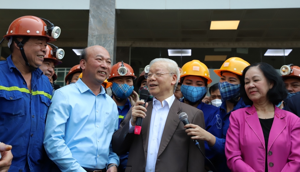 Tổng Bí thư thăm, động viên và nói chuyện với cán bộ, công nhân viên Công ty cổ phần Than Vàng Danh – Vinacomin _ Ảnh: Vov.vn