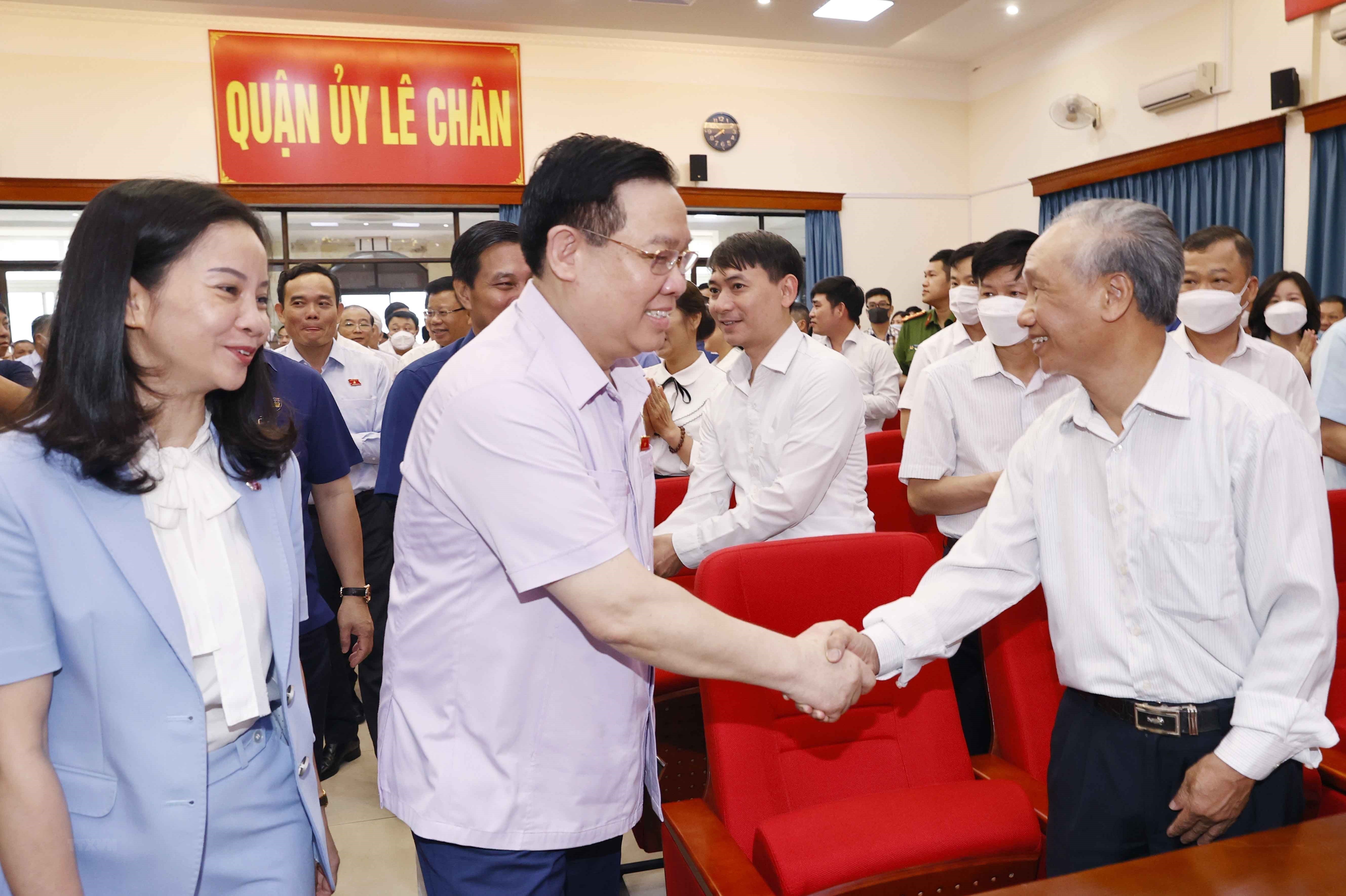 Chủ tịch Quốc hội Vương Đình Huệ tiếp xúc cử tri tại thành phố Hải Phòng