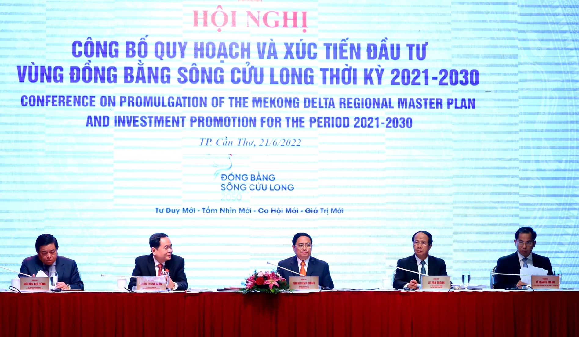 TCCS - Ngày 21-6-2022, tại thành phố Cần Thơ, Hội nghị công bố quy hoạch và xúc tiến đầu tư vùng đồng bằng sông Cửu Long thời kỳ 2021 - 2030 diễn ra. Ủy viên Bộ Chính trị, Thủ tướng Chính phủ Phạm Minh Chính dự và chủ trì hội nghị. Tham dự hội nghị có khoảng 400 đại biểu là đại diện lãnh đạo các ban, bộ, ngành trung ương, các địa phương vùng đồng bằng sông Cửu Long, Thành phố Hồ Chí Minh, các nhà đầu tư, doanh nghiệp, đối tác phát triển, các chuyên gia, nhà khoa học trong và ngoài nước.