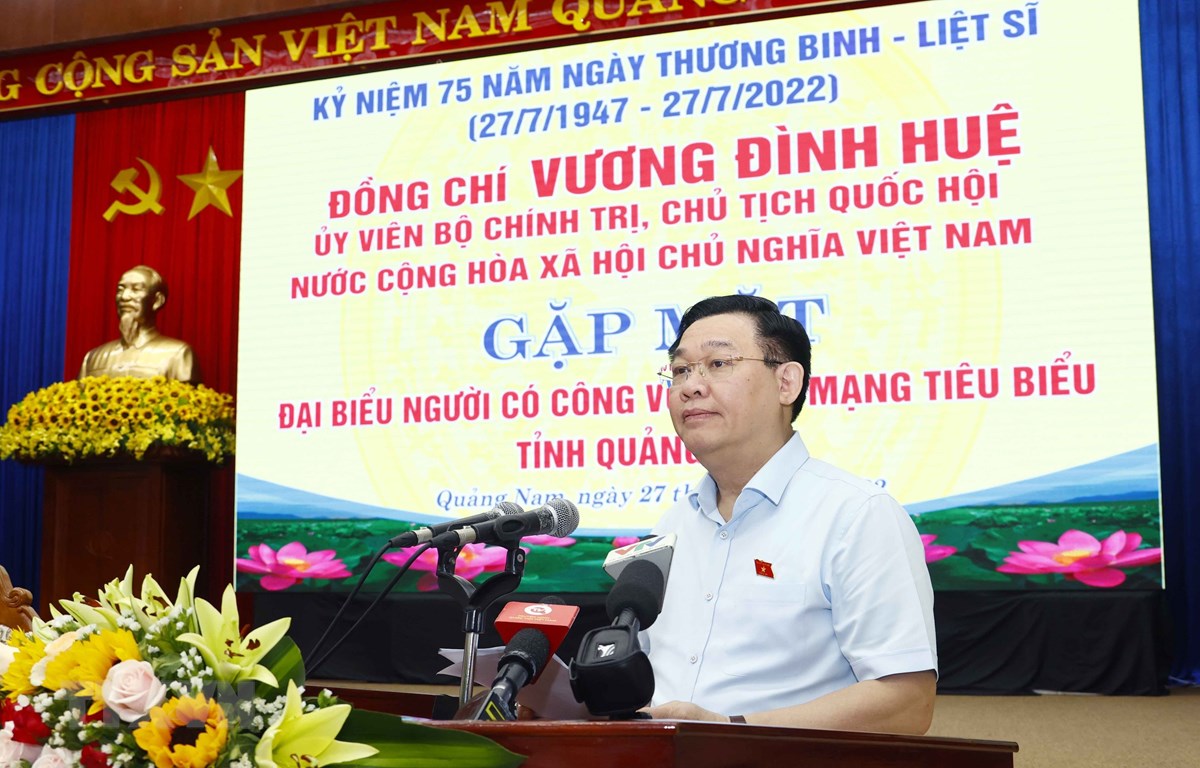 TCCS - Nhân kỷ niệm 75 năm Ngày Thương binh - Liệt sĩ, ngày 27-7-2022, tại thành phố Tam Kỳ, tỉnh Quảng Nam tổ chức cuộc gặp mặt đại biểu người có công cách mạng tiêu biểu. Ủy viên Bộ chính trị, Chủ tịch Quốc hội Vương Đình Huệ tham dự cuộc gặp mặt.