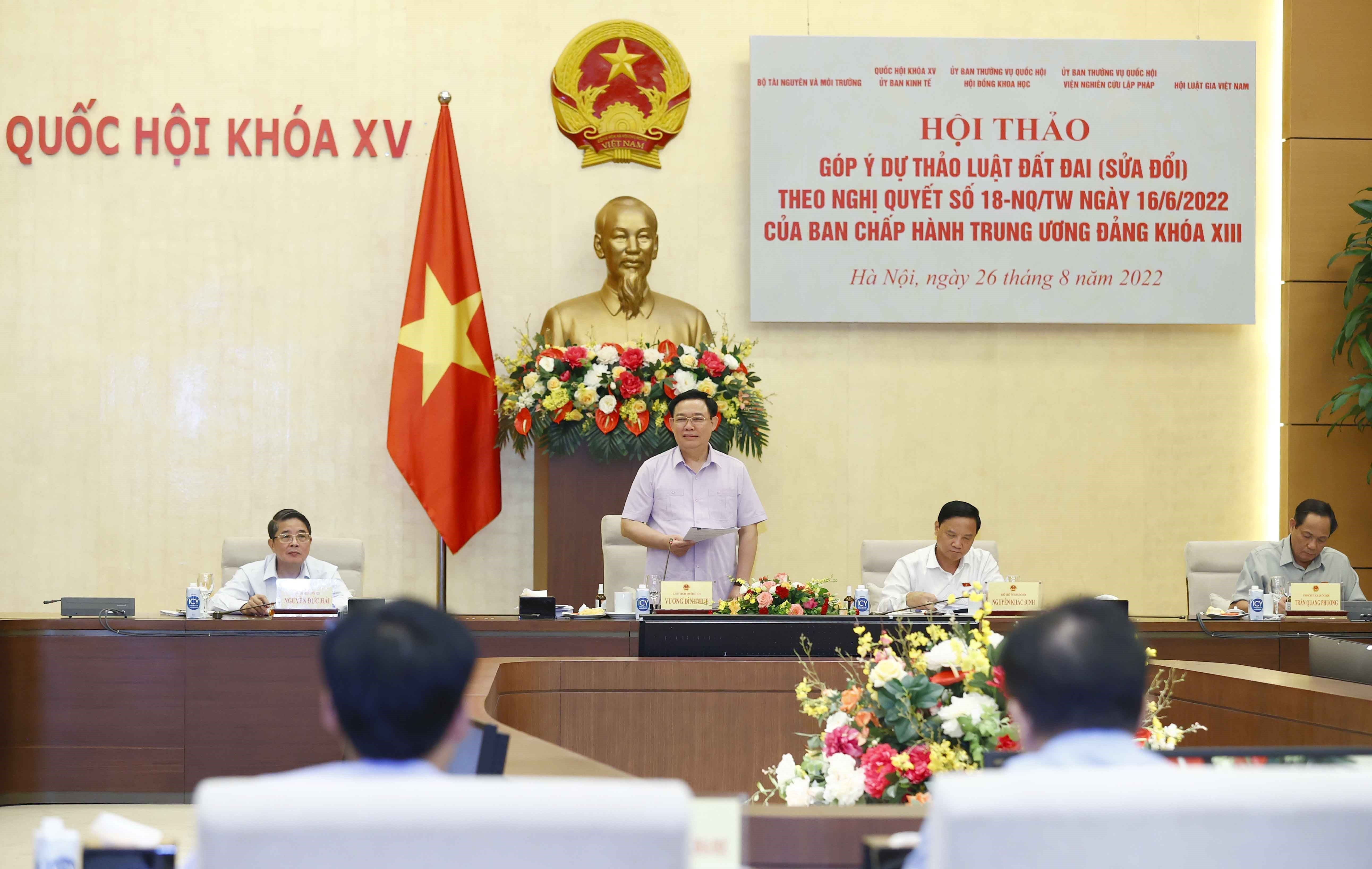Chủ tịch Quốc hội Vương Đình Huệ dự hội thảo góp ý dự thảo Luật Đất đai (sửa đổi)
