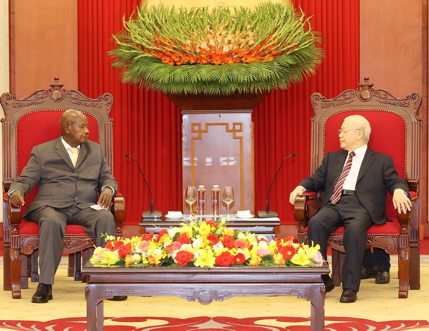 Tổng Bí thư Nguyễn Phú Trọng hoan nghênh chuyến thăm của Tổng thống Uganda, nhấn mạnh sự kiện có ý nghĩa quan trọng, mở ra giai đoạn phát triển mới giữa hai đảng, hai nước, đặc biệt trong bối cảnh hai nước chuẩn bị kỷ niệm 50 năm thiết lập quan hệ ngoại giao (1973 - 2023). Tổng Bí thư chúc mừng những thành tựu của Uganda trong xây dựng và phát triển đất nước; bày tỏ tin tưởng, dưới sự lãnh đạo của Đảng Phong trào Kháng chiến Quốc gia và Tổng thống Yoweri Kaguta Museveni, đất nước Uganda sẽ tiếp tục giữ vững môi trường hòa bình, ổn định, ngày càng phát triển.