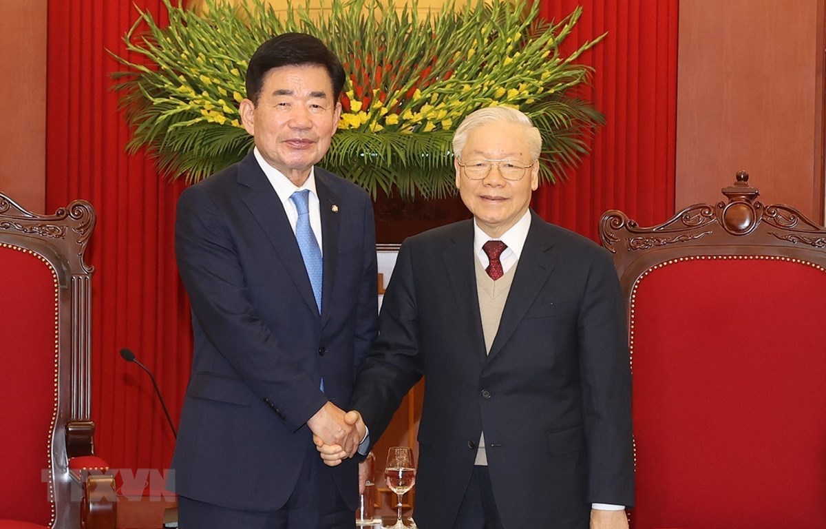 Tại buổi tiếp Chủ tịch Quốc hội Hàn Quốc, Tổng Bí thư Nguyễn Phú Trọng, Chủ tịch Quốc hội Vương Đình Huệ, Thủ tướng Chính phủ Phạm Minh Chính hoan nghênh ngài Chủ tịch Quốc hội Hàn Quốc sang thăm Việt Nam vào thời điểm hai nước vừa nâng cấp quan hệ lên thành đối tác chiến lược toàn diện và kỷ niệm 30 năm thiết lập quan hệ ngoại giao Việt Nam - Hàn Quốc. Các nhà lãnh đạo nước ta đánh giá cao sự phát triển tích cực trên nhiều mặt trong quan hệ song phương với nền tảng là mối quan hệ lâu đời, chia sẻ nhiều lợi ích chung, có tiềm năng và thế mạnh bổ sung lẫn nhau, cùng những thành tựu phát triển tốt đẹp trong 30 năm qua. Đặc biệt, hai nước có mối quan hệ giao lưu nhân dân hết sức gần gũi với hơn 200 nghìn người dân đang sinh sống, làm việc và khoảng 80 nghìn cô dâu, chú rể ở mỗi nước.