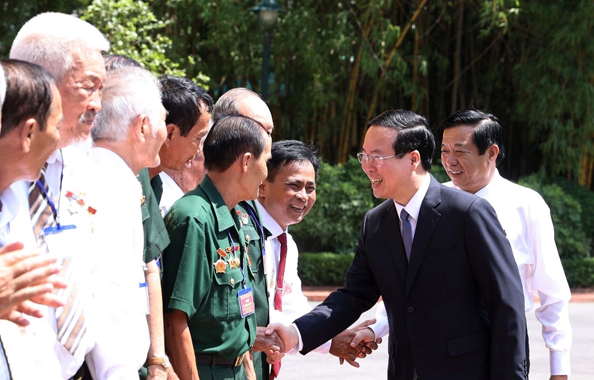 TCCS - Ngày 30-5-2023, tại Phủ Chủ tịch, Ủy viên Bộ Chính trị, Chủ tịch nước Võ Văn Thưởng gặp mặt Đoàn 70 đại biểu người có công tỉnh Vĩnh Long là các thương binh, bệnh binh, người từng bị tù đày, người nhiễm chất độc da cam/dioxin, thân nhân liệt sĩ và gia đình người có công.