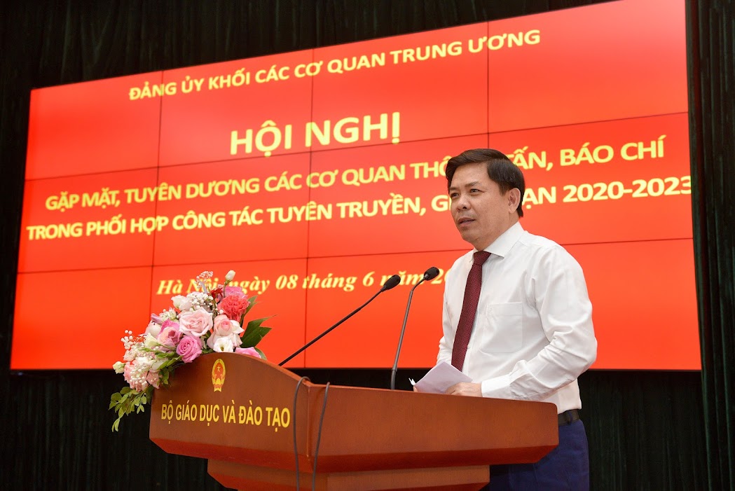 Báo cáo tại hội nghị, đồng chí Nguyễn Minh Chung, Trưởng Ban Tuyên giáo Đảng ủy Khối các cơ quan Trung ương cho biết, nửa đầu nhiệm kỳ đã qua, với sự đồng hành của các cơ quan thông tấn, báo chí, công tác tuyên giáo, thông tin, tuyên truyền của Đảng bộ Khối đã đạt được nhiều kết quả nổi bật, như tuyên truyền tổ chức các đợt sinh hoạt chính trị sâu rộng về Nghị quyết Đại hội XIII của Đảng và các nghị quyết hội nghị Ban Chấp hành Trung ương, Nghị quyết Đại hội XIII của Đảng bộ Khối và nghị quyết đại hội đảng bộ các cấp tới cán bộ, đảng viên, công chức, viên chức, đoàn viên, hội viên của Đảng bộ Khối ở cả trong và ngoài nước.